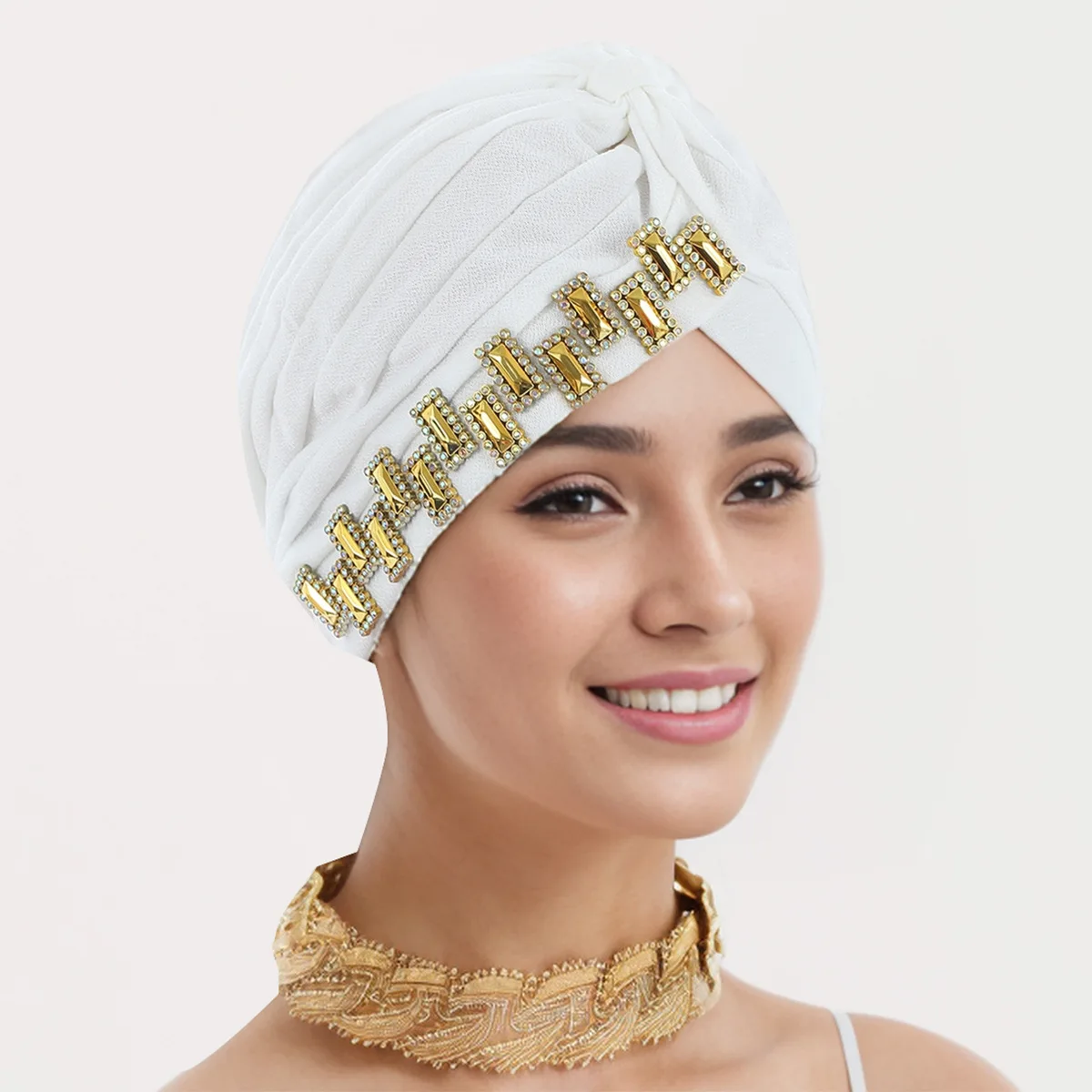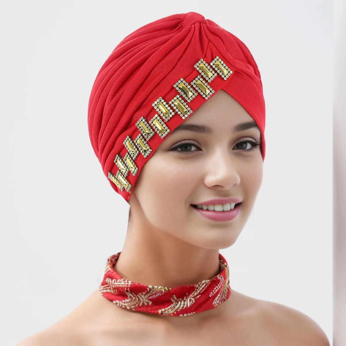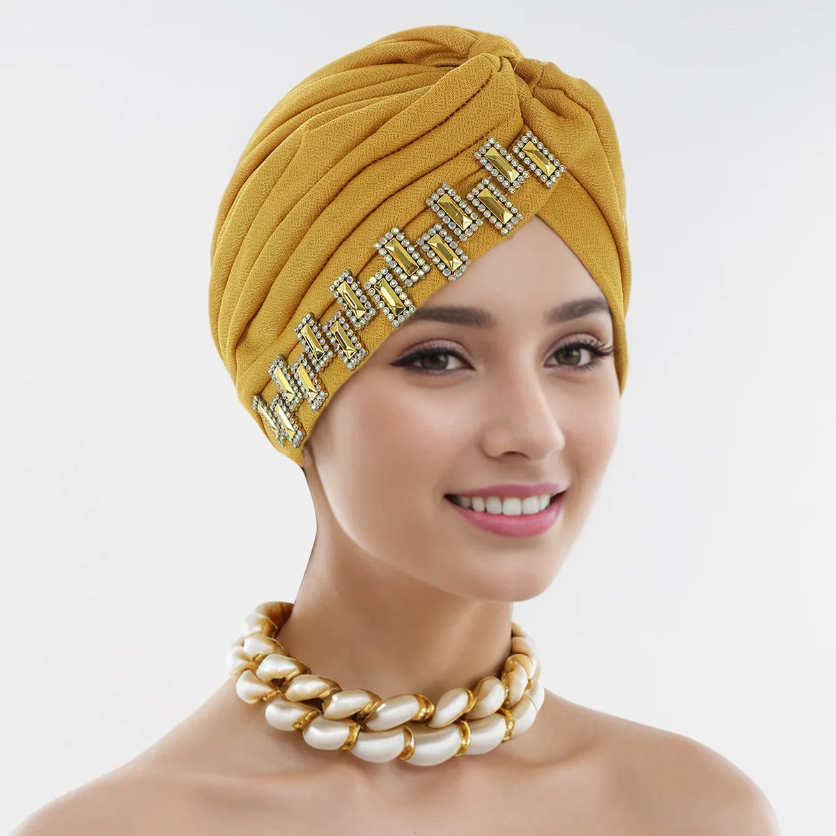 Diamonds Bonnet Muslim Women Twist Knot Turban Ruffle Headscarf Hijab Indian Hat Chemo Caps Hair Loss Headwear Turbante Mujer