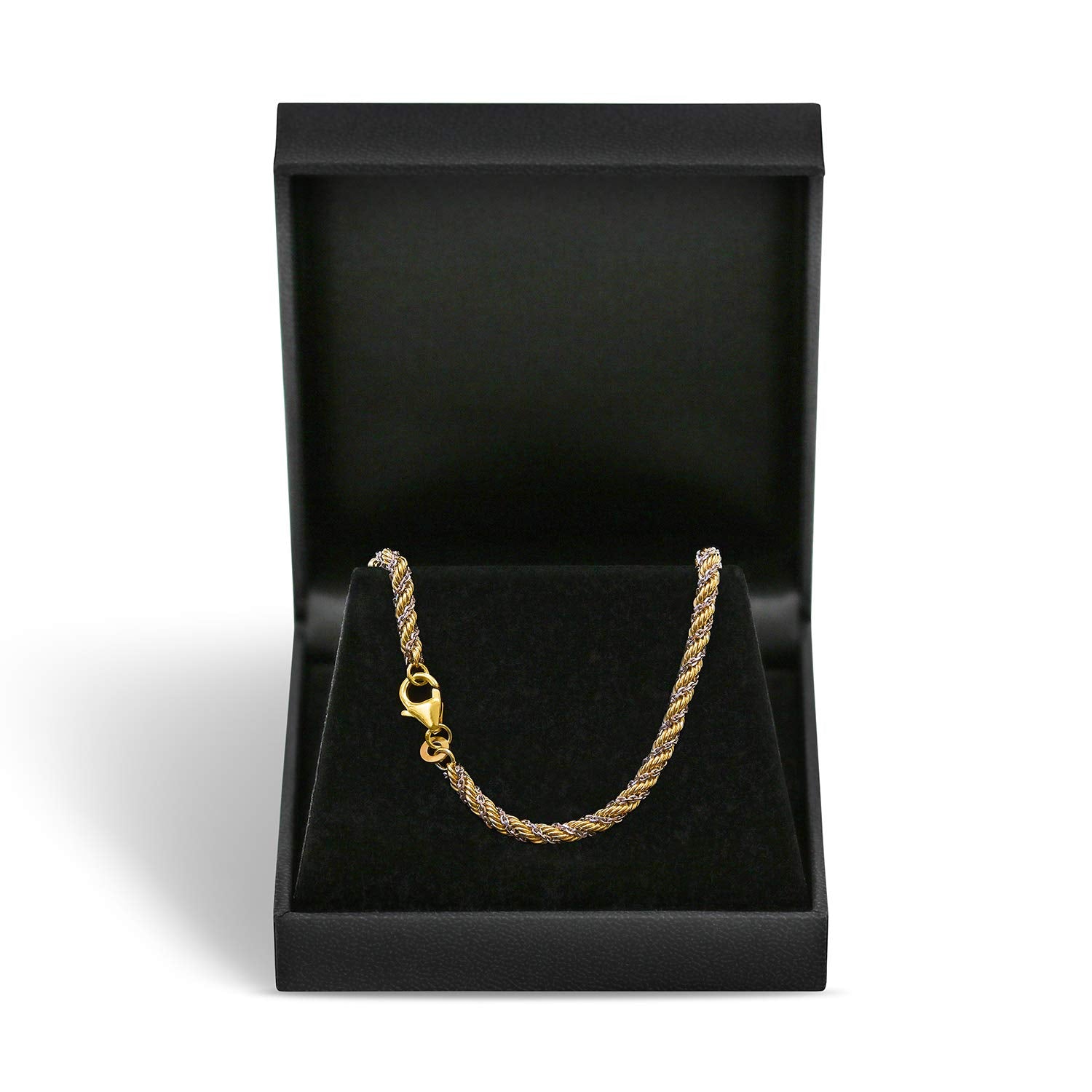 - ECHT GOLD Damen Armband in 8 Karat (333) Bicolor als Kordelkette hohl und Karabinerverschluss mit Feingehaltsstempel (Punze) versehen, Sie erwerben ein hochwertiges Armreif in einer Länge von 18,5 cm, 3,3 mm breit und einem Gewicht von ca, 4,3 Gramm,