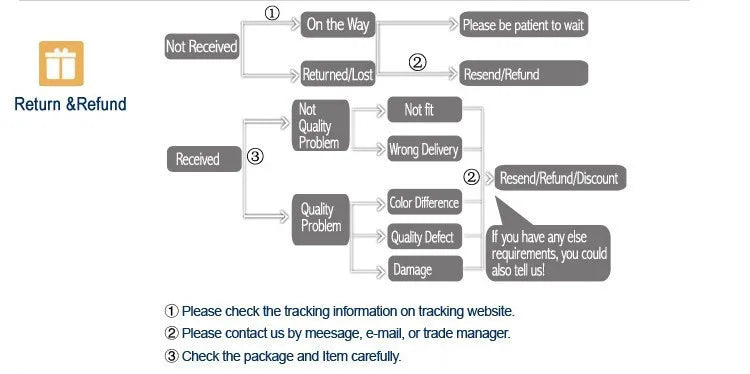 3. Before returning the items, please confirm the return address and the logistics method with us. After you give the items to the logistic company, please send us the tracking number. ?As soon as we receive the items, we will repair or exchange them ASAP.