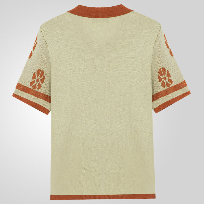 Jacquard Men's Knitted Shirt Lapel Cardigan Short Sleeve Polo Shirt