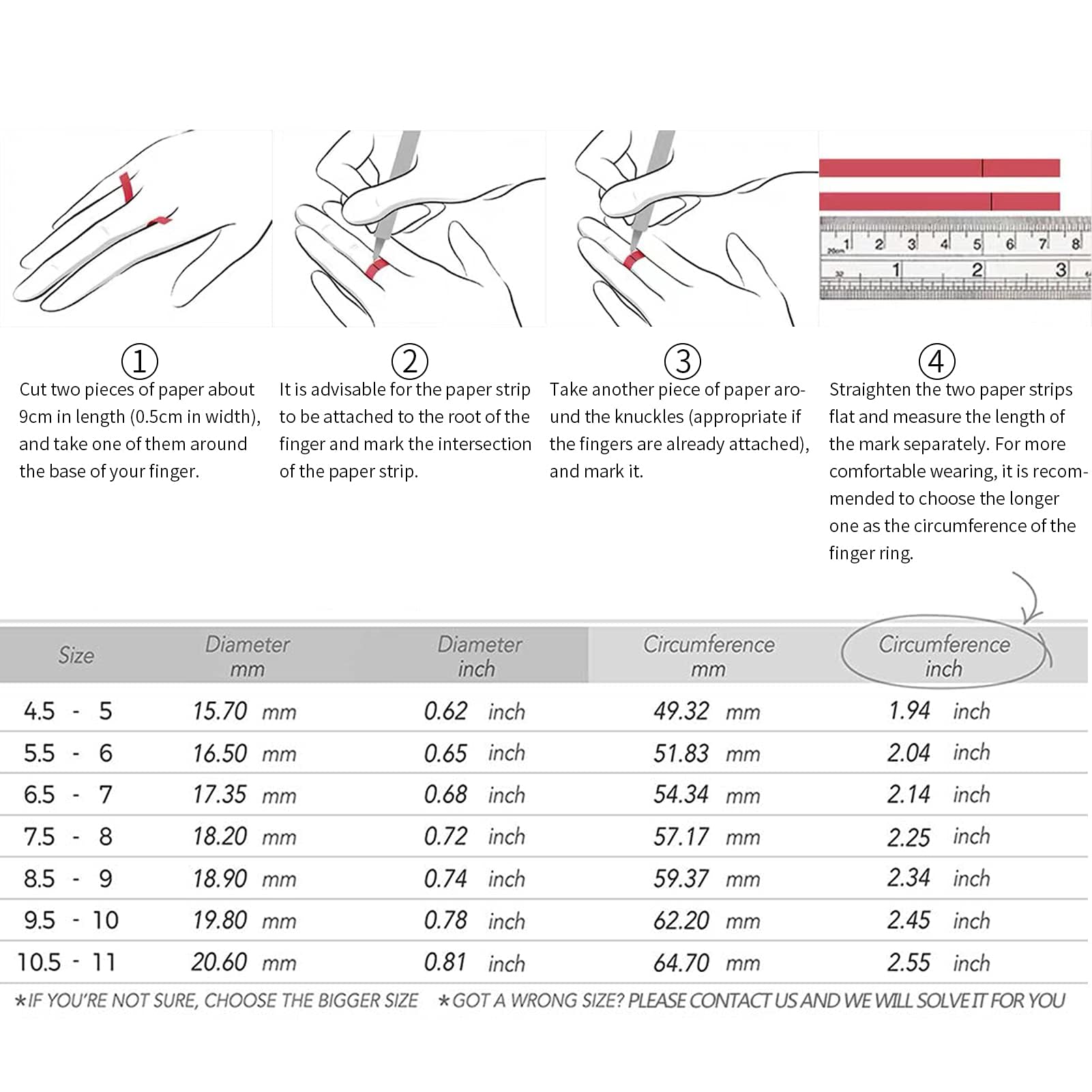 3、Measure the length of marked paper or thread, which is your finger's circumference.