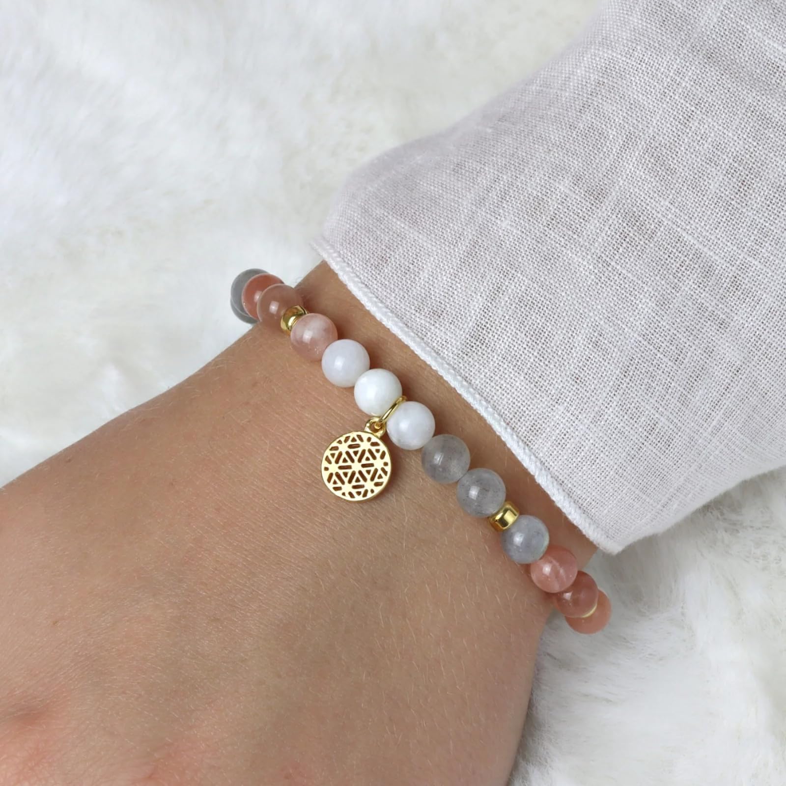 KARYSMA LEBENSBLUME Armband aus echtem MONDSTEIN, Gold plattiert