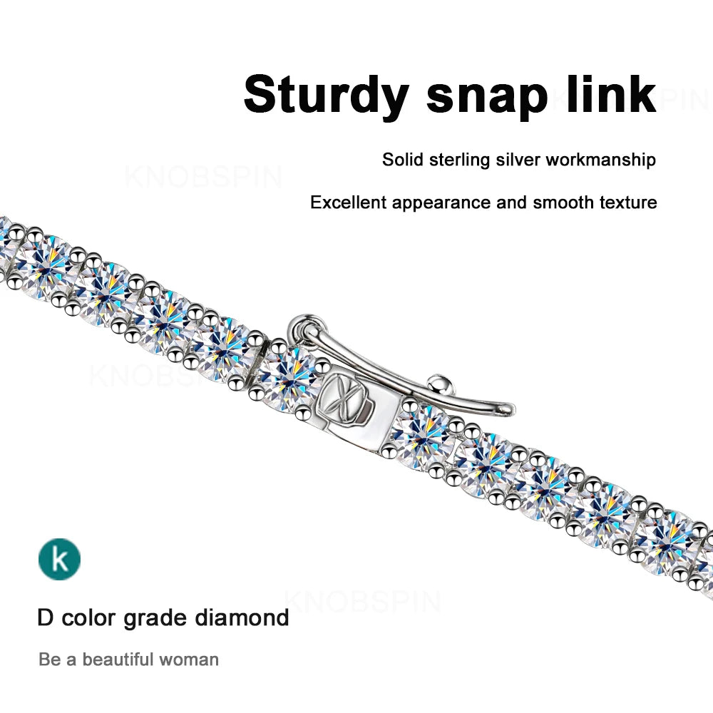 KNOBSPIN D Color Moissanite Tennis Necklace 925 Sterling Sliver Plated 18k Gold Necklace for Woman Man Hiphop Party Jewelry
