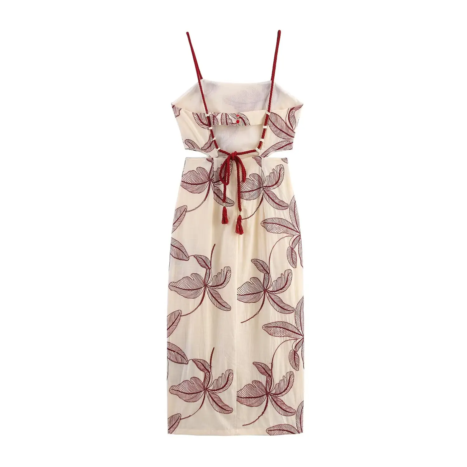 KONDALA Fall Women Elegant Embroidered Cami Dress Slim Waist Hollow-out Midi Dress 2025 Summer Autumn Fashion Holiday Sexy Dress