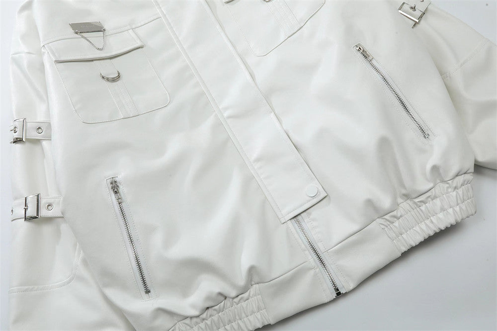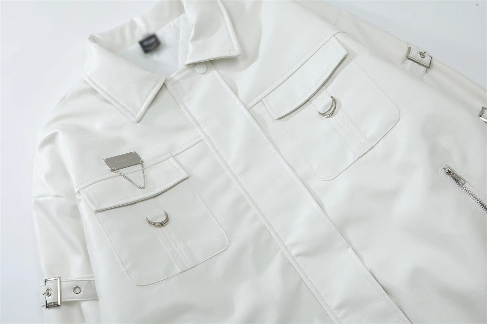 Lace-up Design Sense Motorcycle Clothing Leather Coat Men's Rock Loose PU Leather Jacket