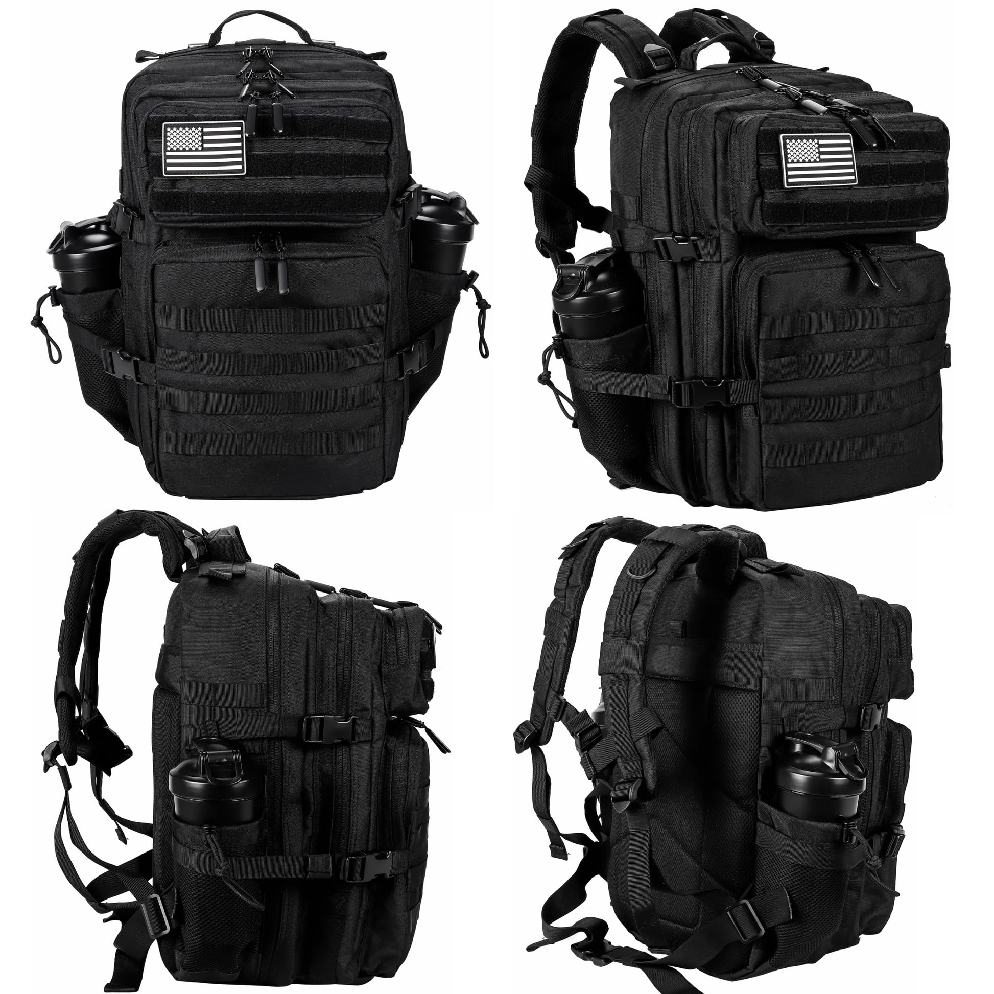 - 3. Tactical backpack has molle system, Plenty of mount points on the outside of tactical backpack for add-on pouches, designed to be used in combination with other equipment, you can load pockets, water bottle bag, accessory kits and other.