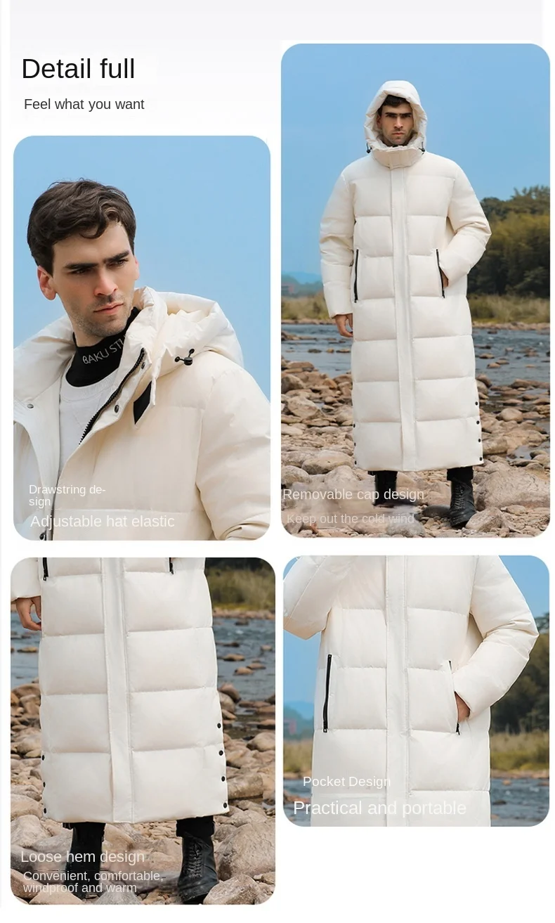 Light Luxury Goose Down Jacket Men's Women's Winter Fashion Hooded Long Over-the-Knee Parka Casual Windproof Male Down Jacket