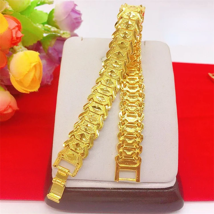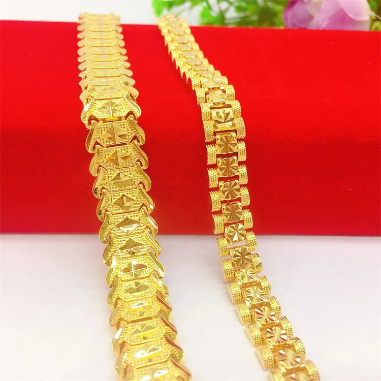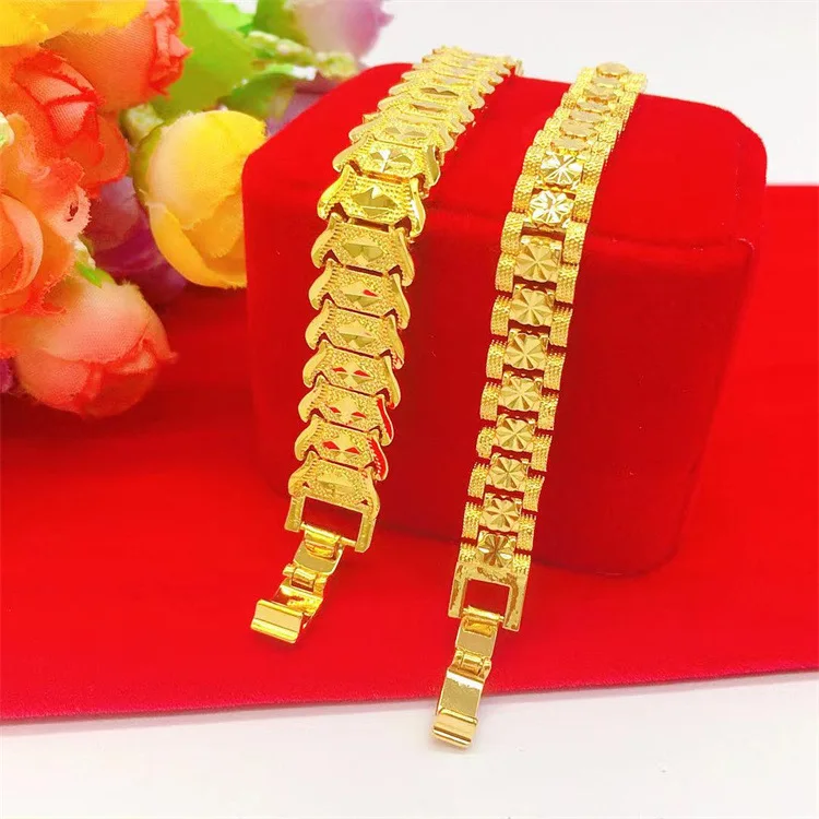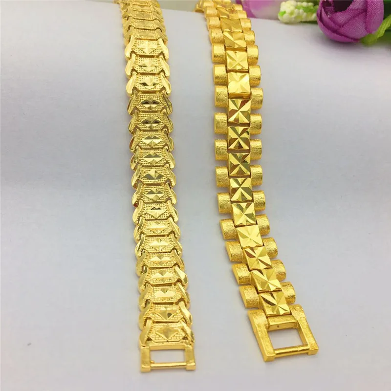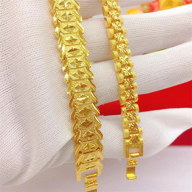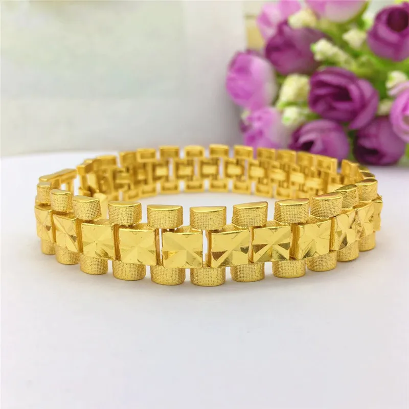 Luxury 18K Gold Bracelet for Wedding Engagement Fashion Jewelry Widen Watch Chain Bracelet Not Fade Fine Jewelry Gifts