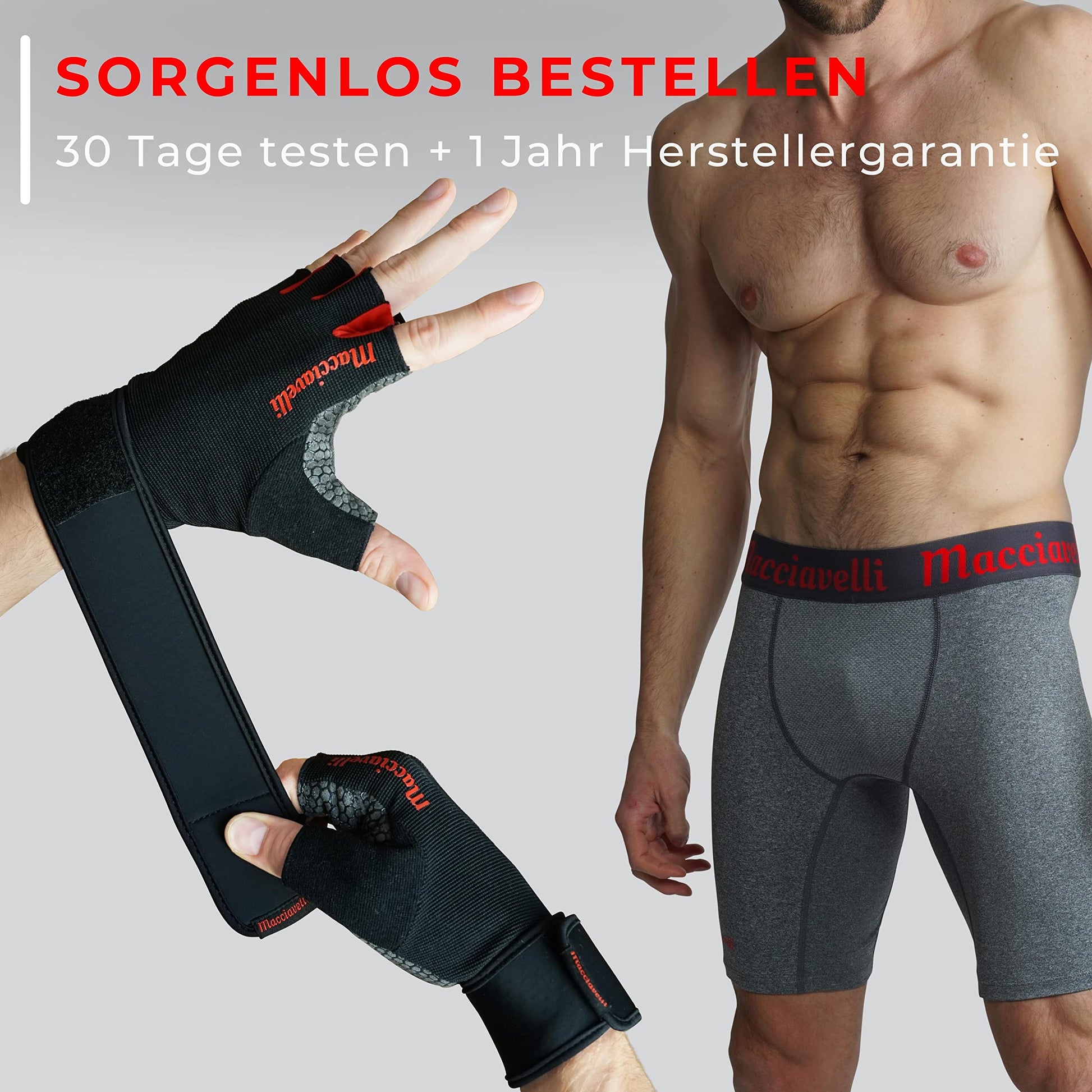 MACCIAVELLI® Fitness Handschuhe Herren Damen - Trainingshandschuhe für Krafttraining, Kraftsport, Bodybuilding - Gym Handschuhe, Fitnesshandschuhe