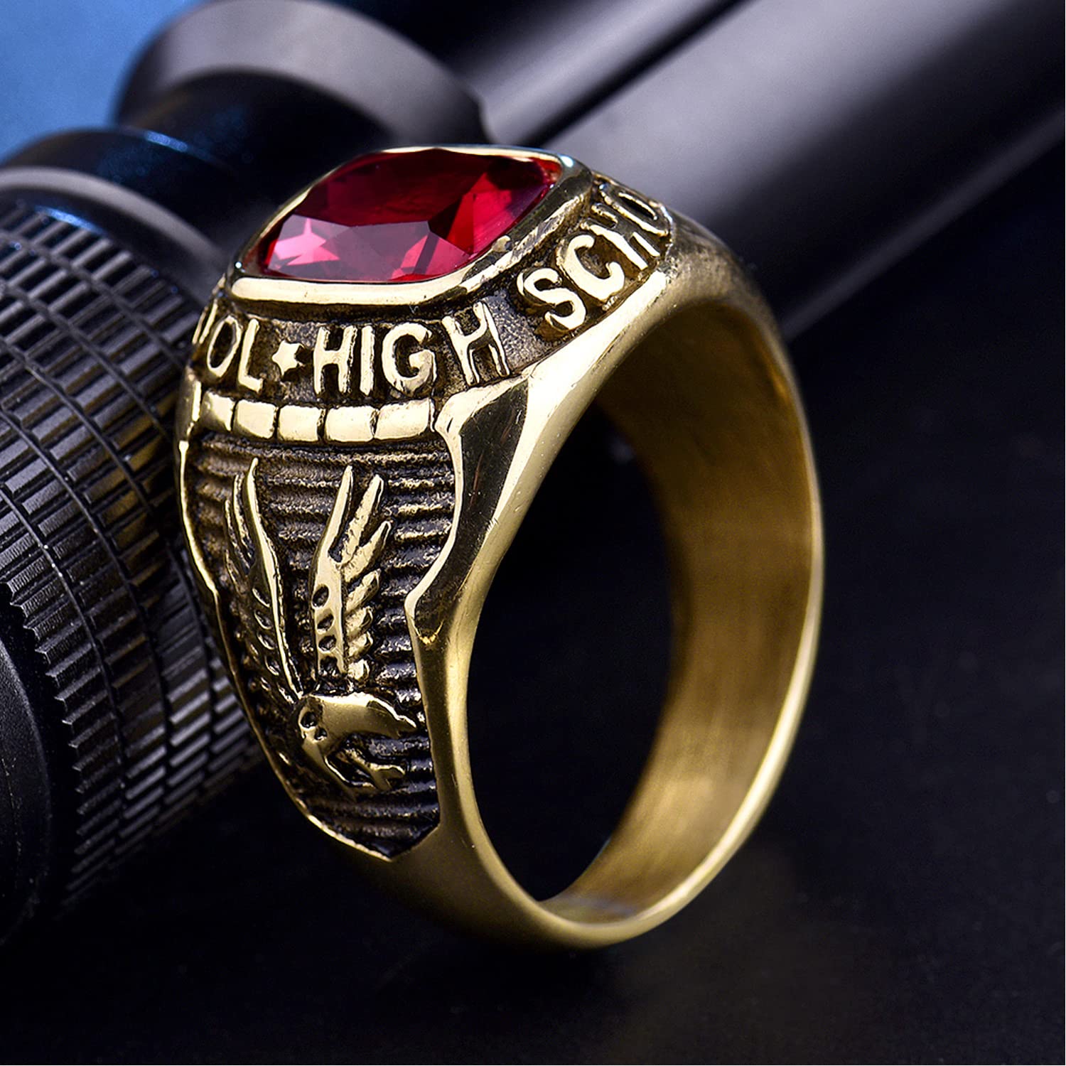 MASOP Retro High School Stainless Steel Crystal Rings for Men Engraved Flying Eagle Size 9