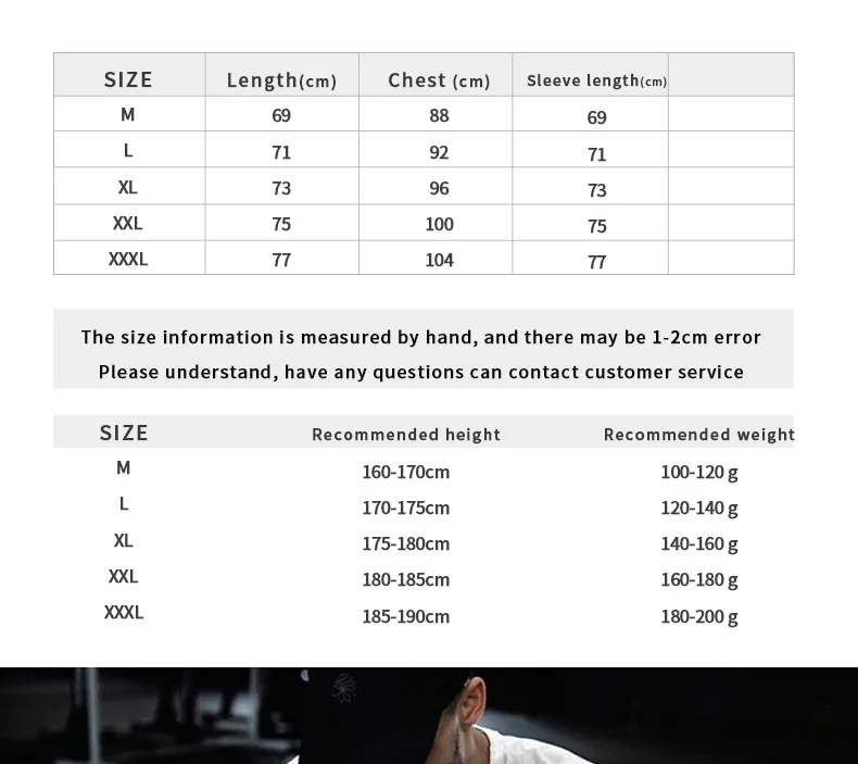 1. Because every person's body shape is different, the recommended height and weight can only be used as a reference.