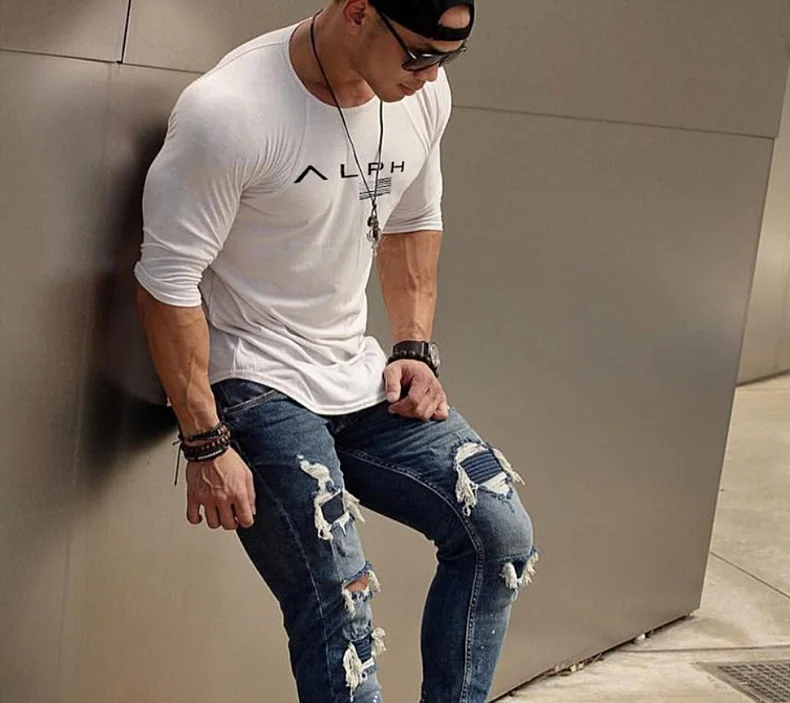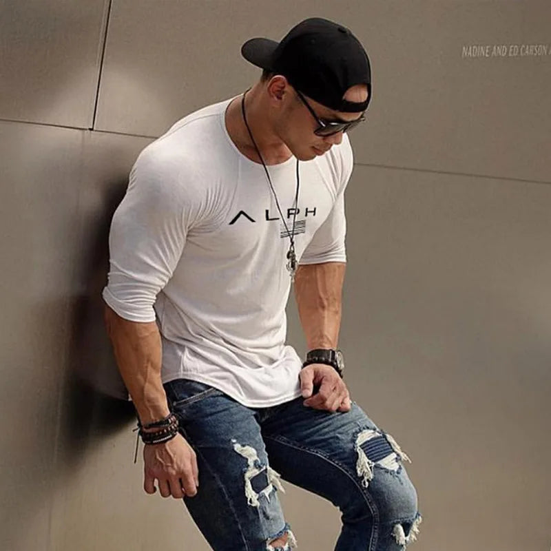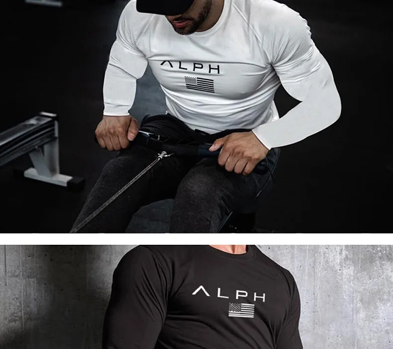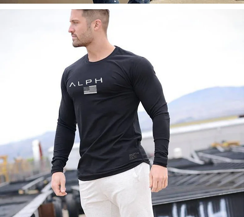Men's Gym Clothing Bodybuilding T Shirt Running Sweatshirt Breathable Fitness Casual Male Long Sleeve Tshirt Cotton Tops