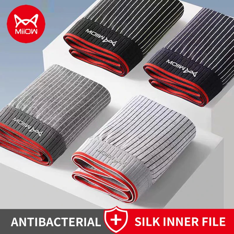 MiiOW 3Pcs Cotton Men's Panties 3A Antibacterial Man Boxer Underwear Fashion Stripeds Printed Men Underpants Boxers Trunks L-5XL