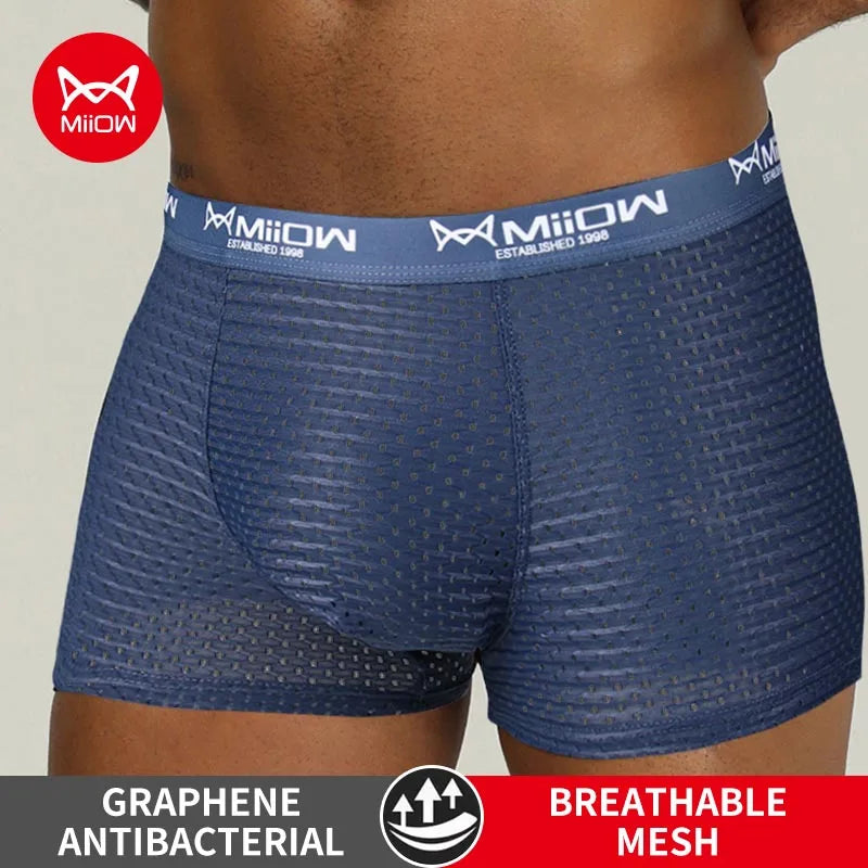 MiiOW Sexy Men Boxer Shorts Underwear Mesh Breathable Ice Silk Male Panties Lingerie Underpants Boxershorts Plus Size L-4XL 2022