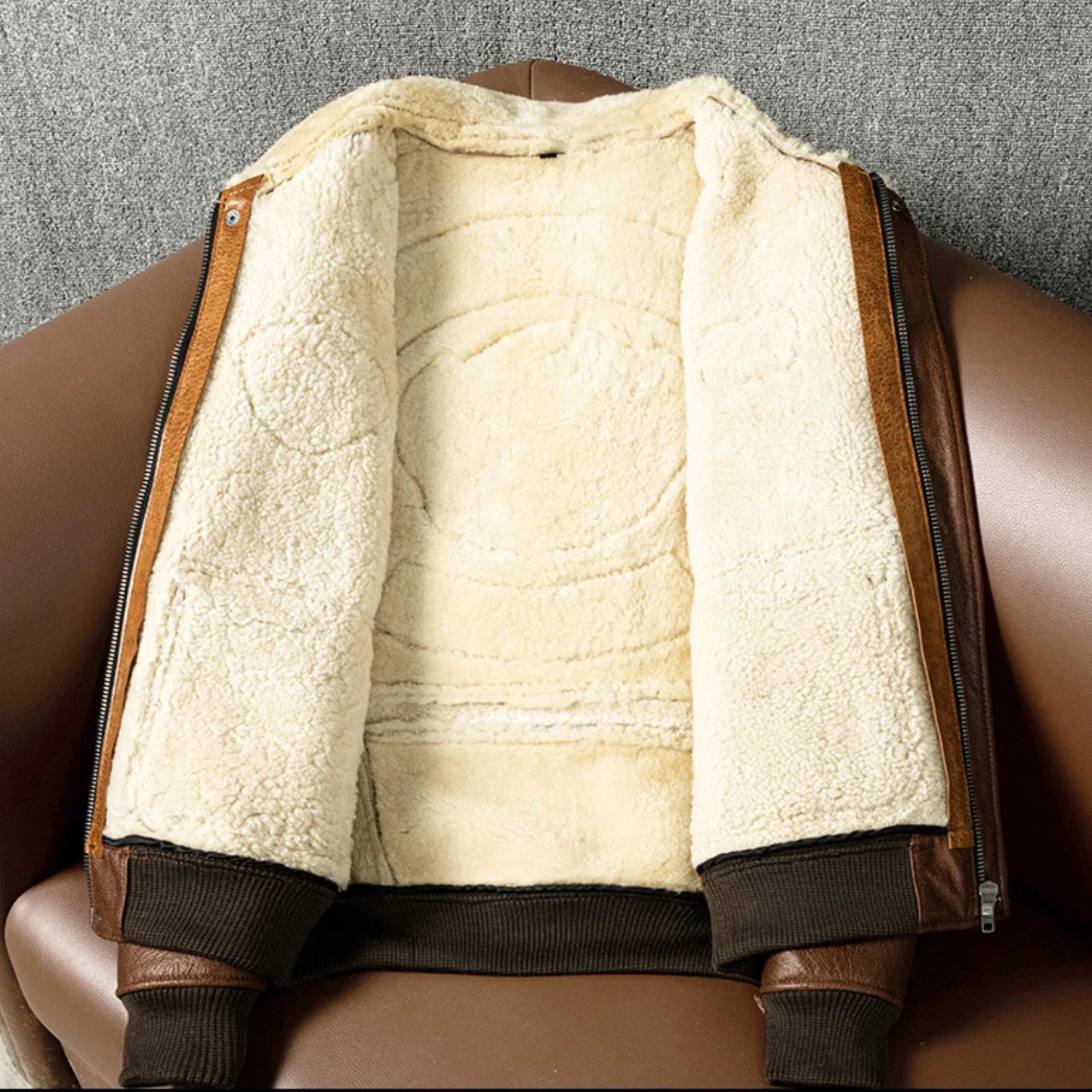 Military A2 Pilot Bomber Genuine Leather Jacket Men Vintage Air Force Flight Wool Collar Sheepskin Coats Winter Jackets for Men