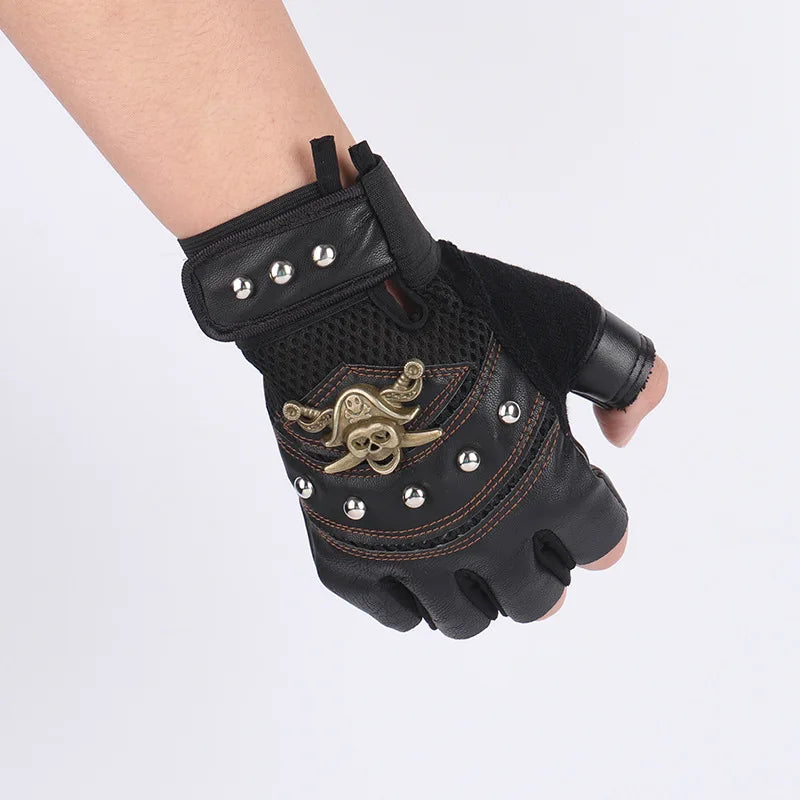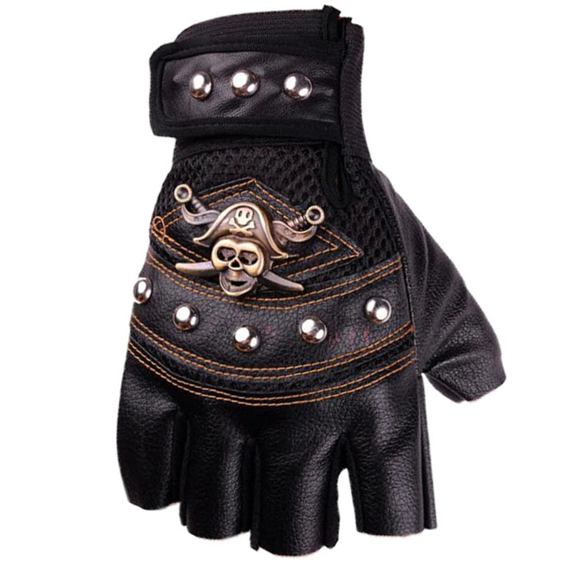 Motorcyclist Men's Gloves PU Pirate Head Glove Fashion Training Exercise Spring Autumn Breathable Street Dance Riveted Gloves