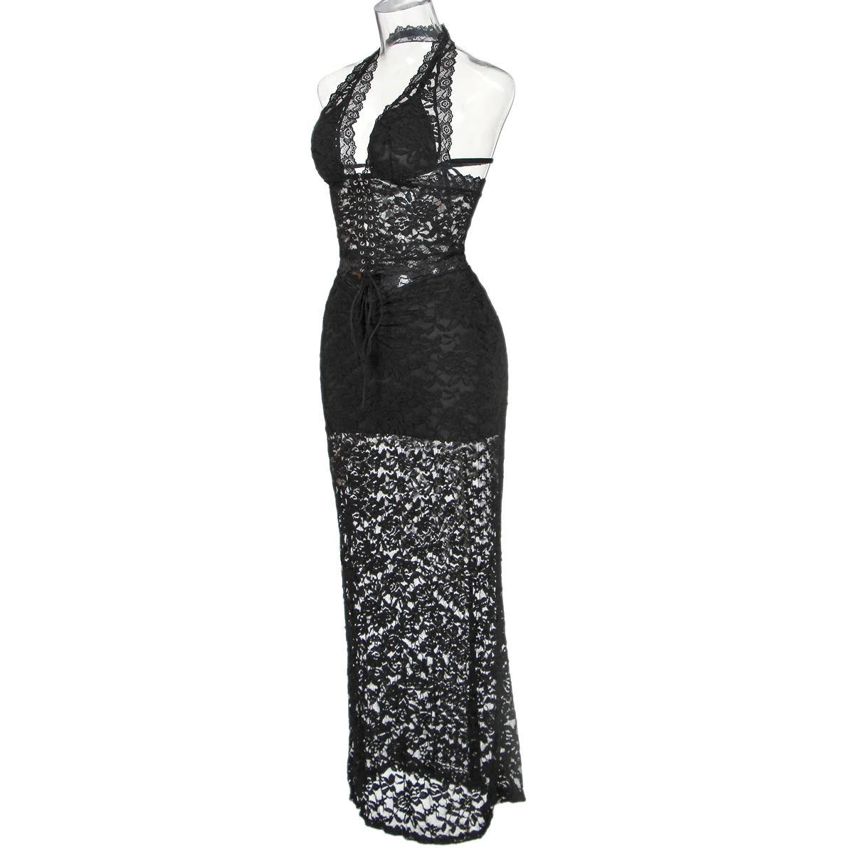 MUZISKAT Summer New Burst Of Fashion Versatile Lace Back Hanging Neck Underwear Long Dress Set Can Be Worn Outside Onlyfan
