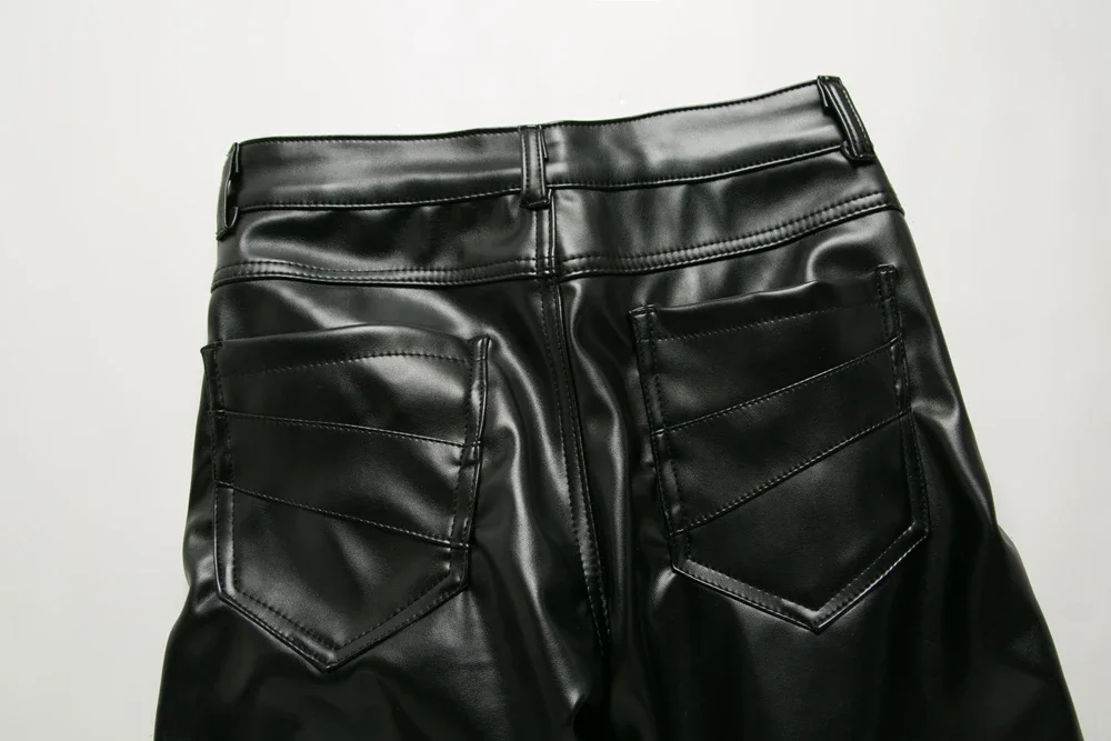 New Arrived Personality Male Leather Pants Male Slim Leather Pants Men's Clothing PU Pants Male