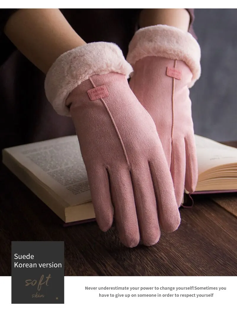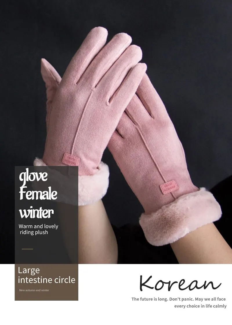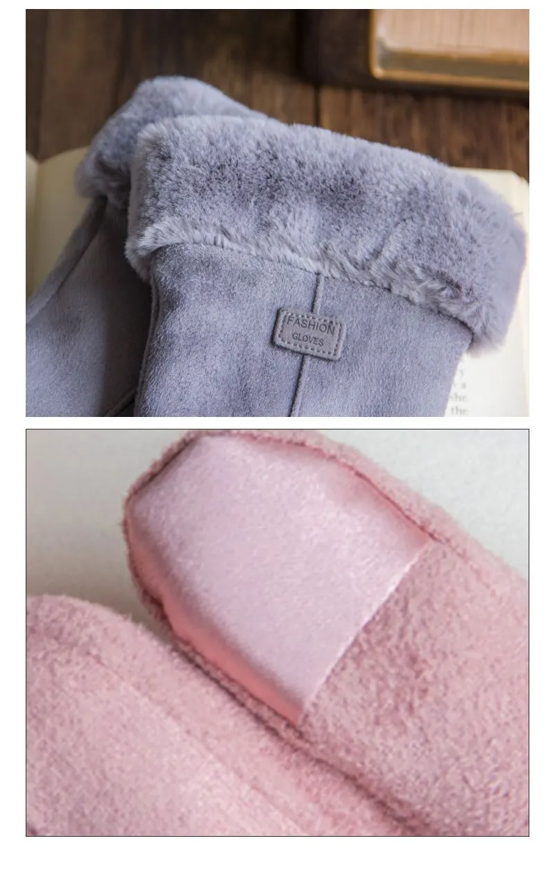 New Fashion Gloves Autumn Winter Cute Furry Warm Mitts Full Finger Mittens Women Outdoor Sport Female Gloves Screen