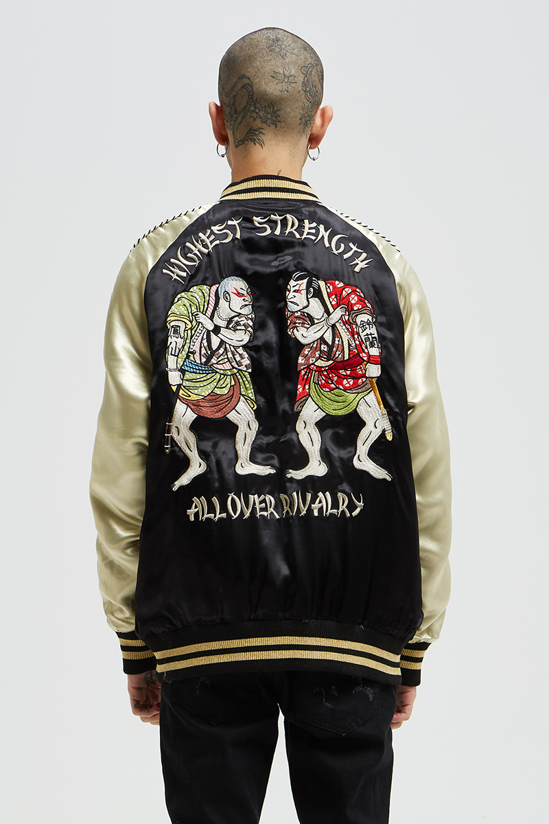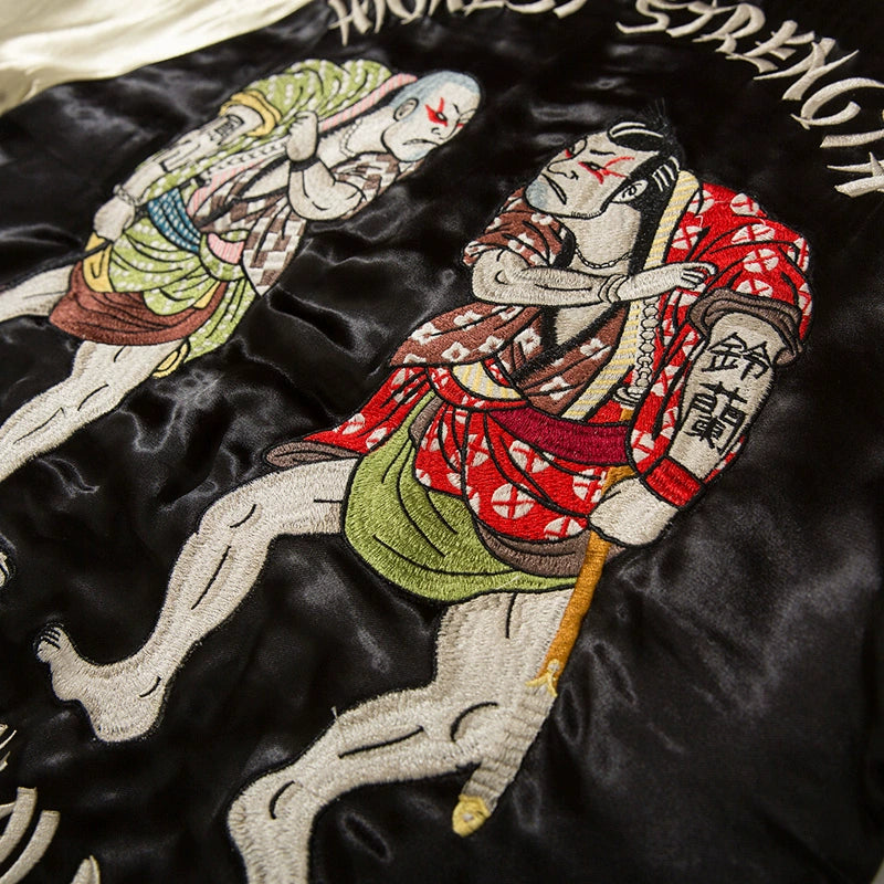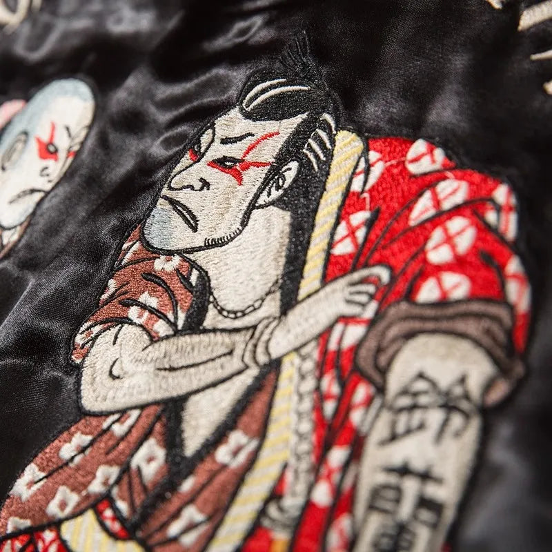 New Men Boys Black Streetwear High Street Vintage Casual Embroidered Loose Fashionable Sukajan Souvenir Jacket 2024