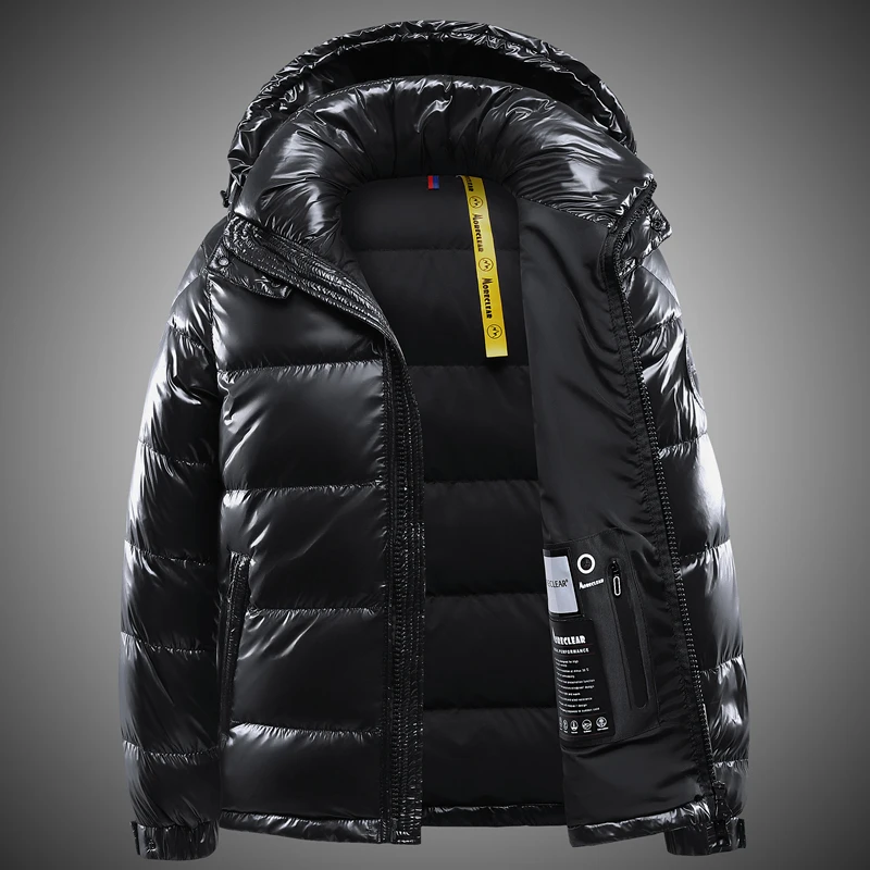 New Men's Winter Black Fashion Cold Warm Jacket Padded Thickened 90% White Duck Down Solid Color Fashion Leisure Jacket
