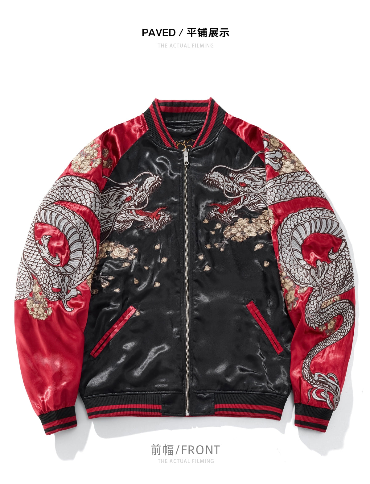 New Red Black Reversible double-sided High Street Dragon Sakura Embroidered Sukajan Souvenir Jacket Streetwear Vintage Coats
