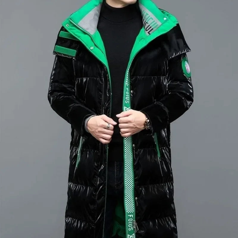 New Winter Jacket Men's Long Luxury Business Thickened Down Cotton Warm Parkas Men's Street Snow Cold-proof Hooded Padded Coat