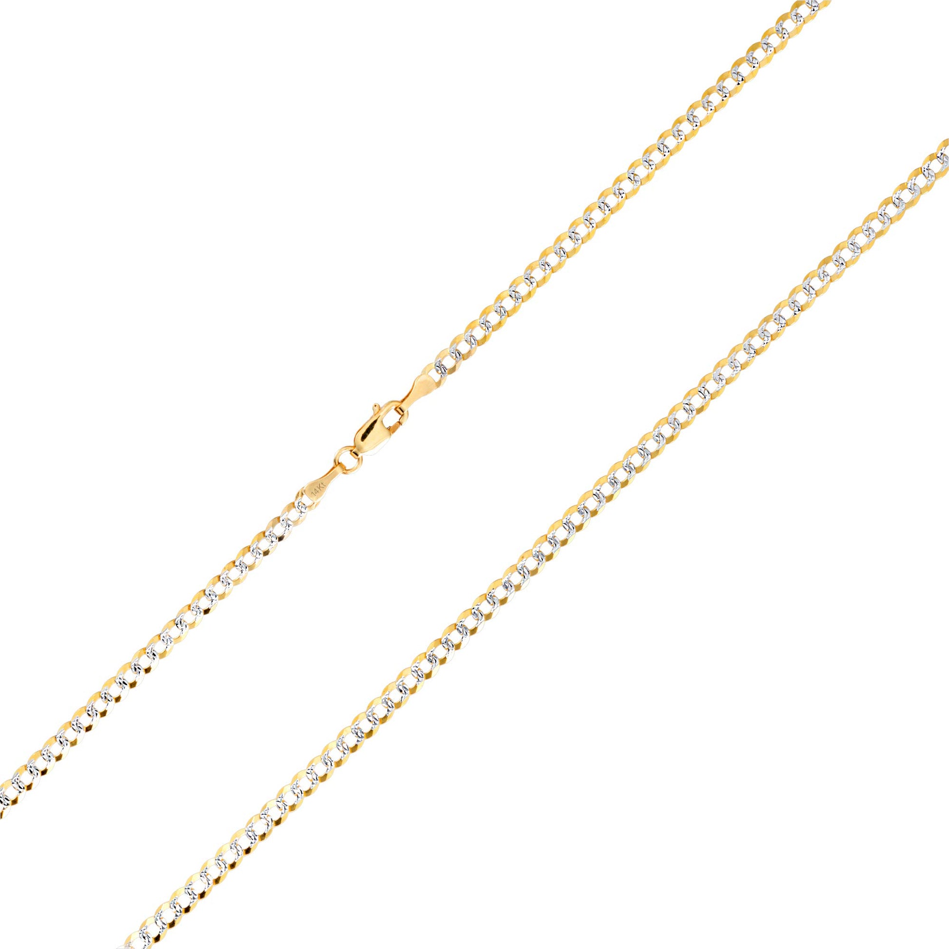 Nuragold 14k Yellow Gold Solid 4mm Cuban Chain Curb Link Diamond Cut Pave Two Tone Pendant Necklace, Mens Womens Jewelry 16" 18" 20" 22" 24" 26" 28" 30"