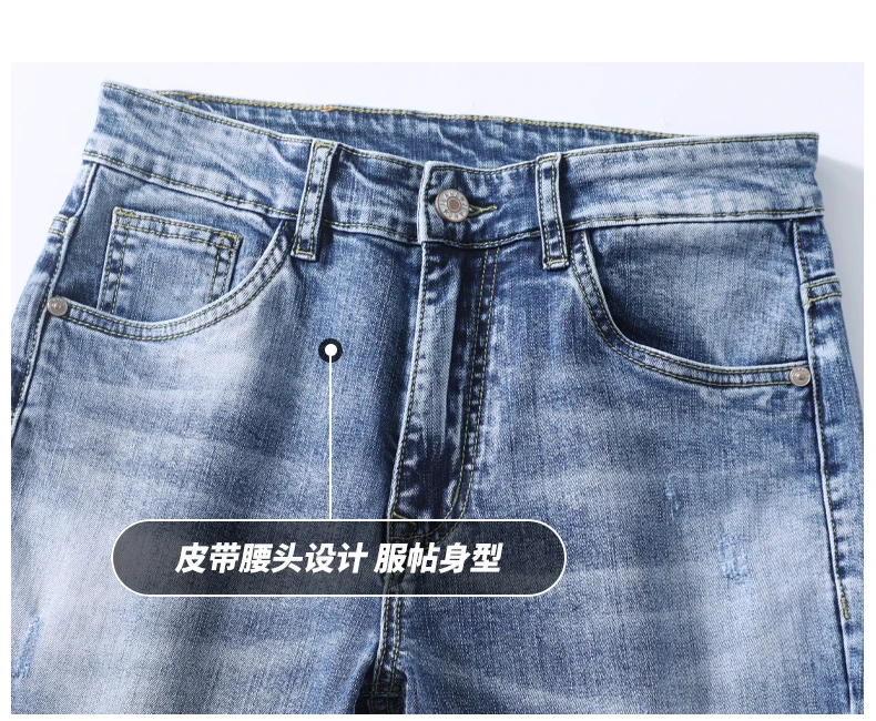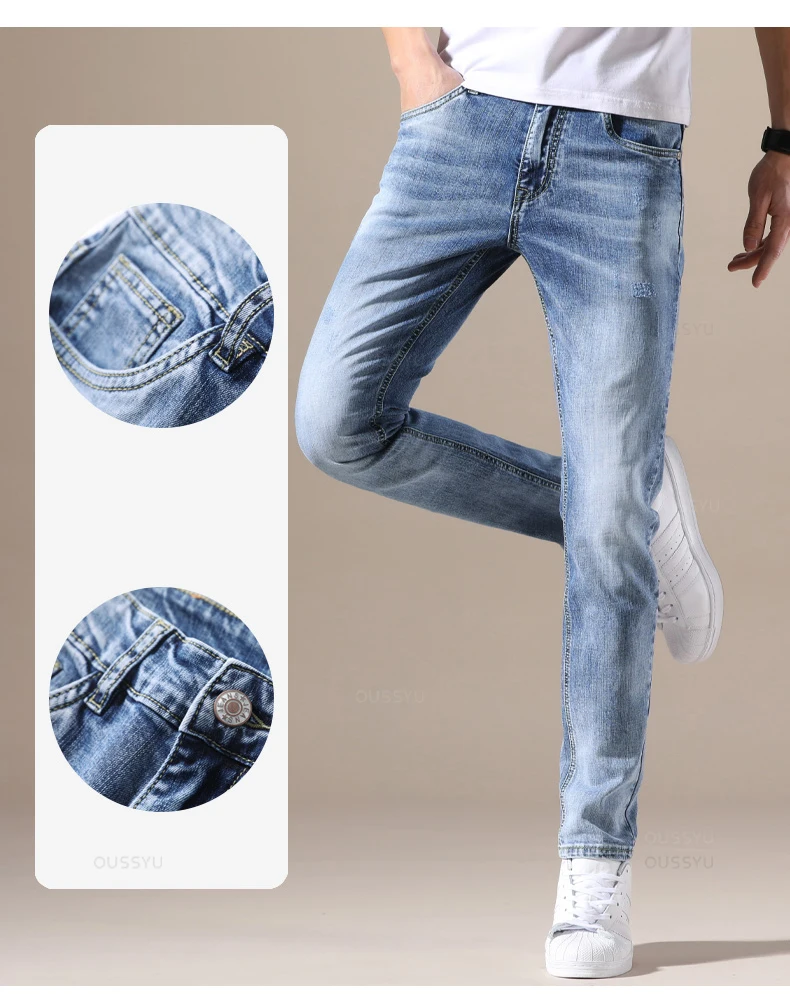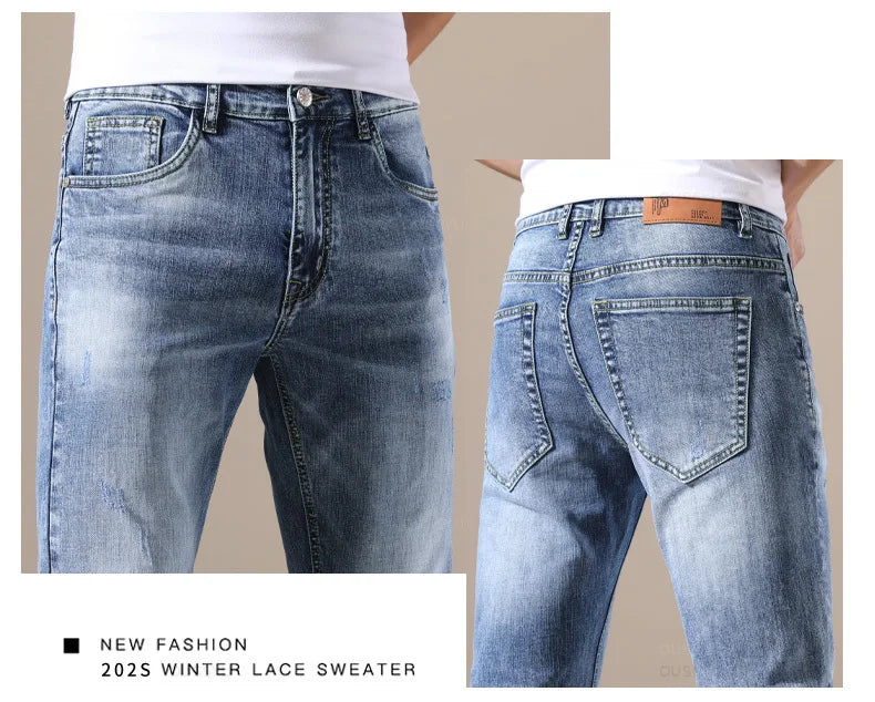 Clothing Jeans Men High Quality Stretch Light Blue Denim Fashion Pleated Retro Pocket Skinny Trousers Pants 28-40