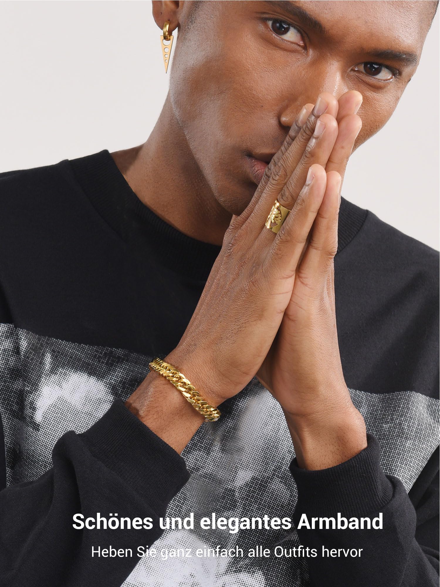 PROSTEEL 18k vergoldet Armband Herren 8mm breit Panzerkette Armband schwer Glieder Link Kettenarmband in 19CM goldenfarbene Armkette Armreif für Männer Jungen Weihnachten Jahrestag