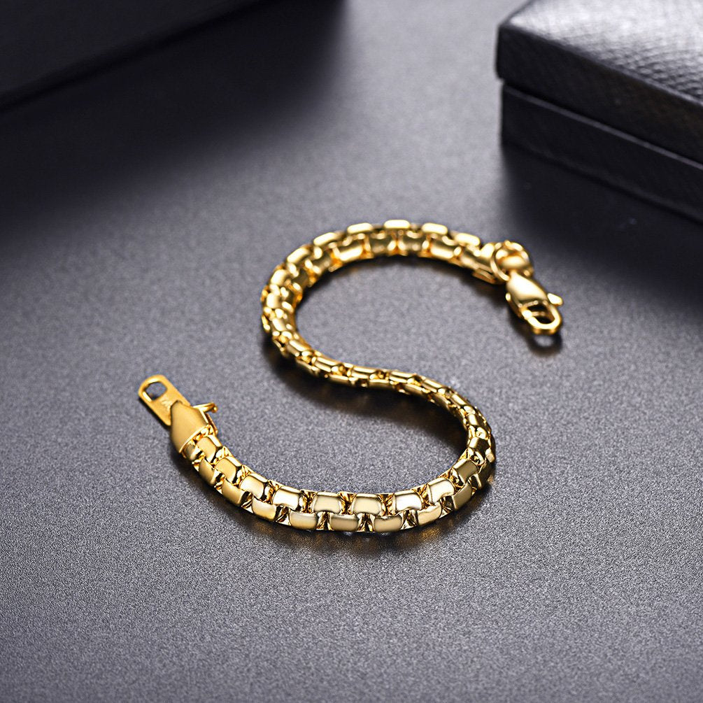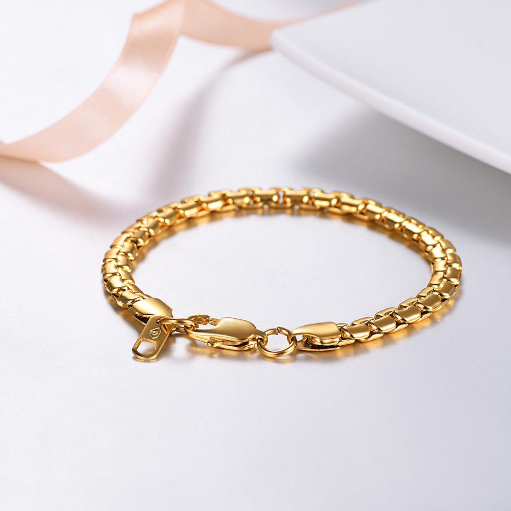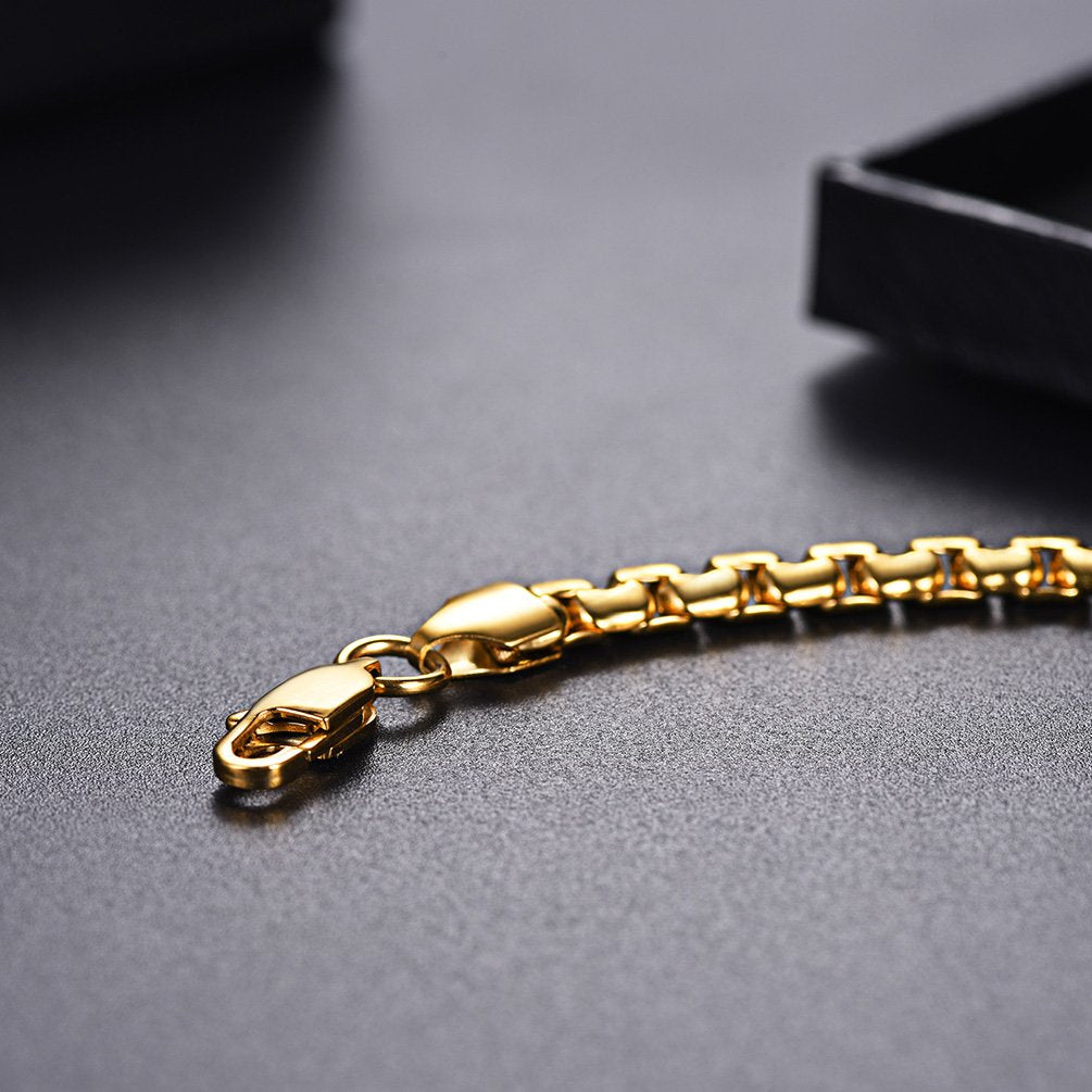 PROSTEEL Herren personalisiert Armband Edelstahl Venezianierkette Box Kette Armband 6mm Breit Fashion Name Gravur Kettenarmband Armkette für Männer Jungen, Länge 20CM, gold