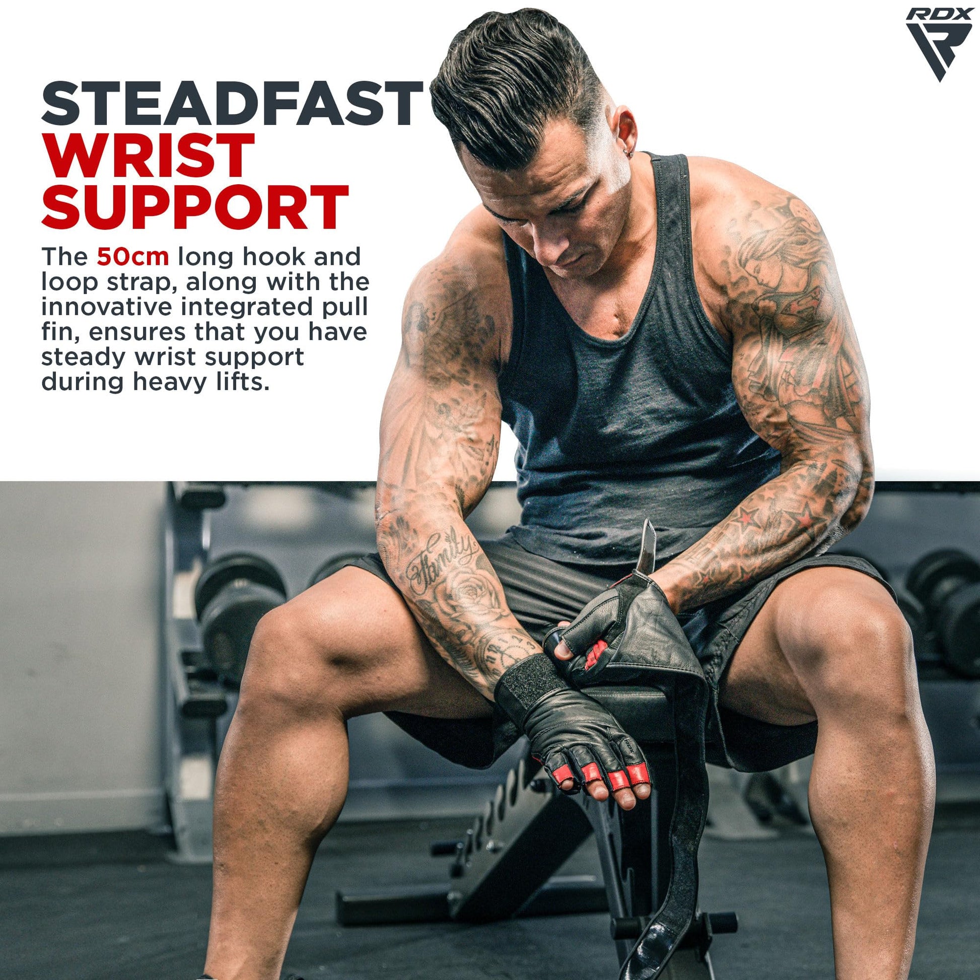 RDX Fitness Handschuhe Maya Hide leder, 50cm Lang Handgelenkschutz, Krafttraining Gewichtheben Trainingshandschuhe Gepolstert Griff, Bodybuilding Gym Workout Kraftsport Klimmzüge Weight Lifting Gloves