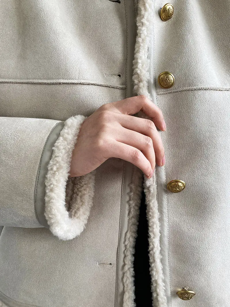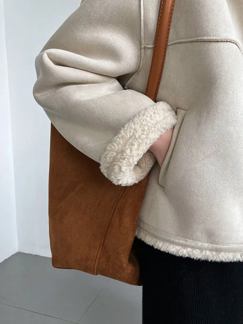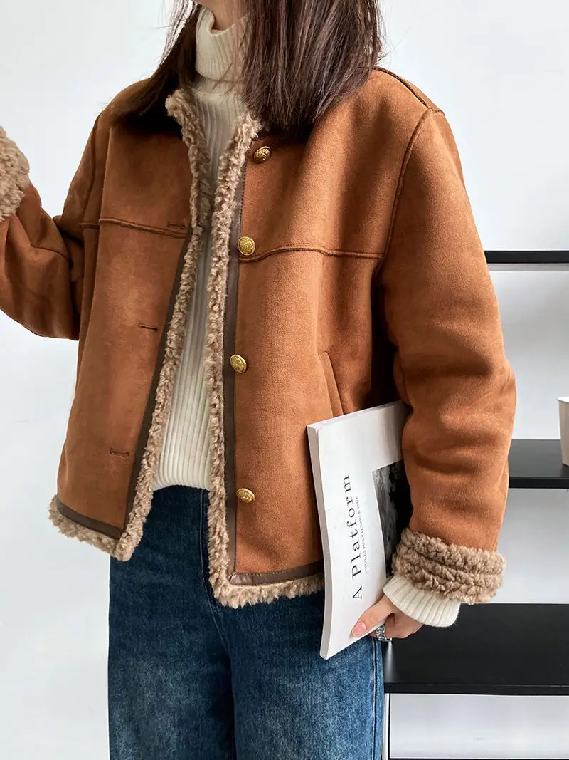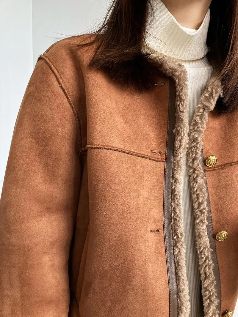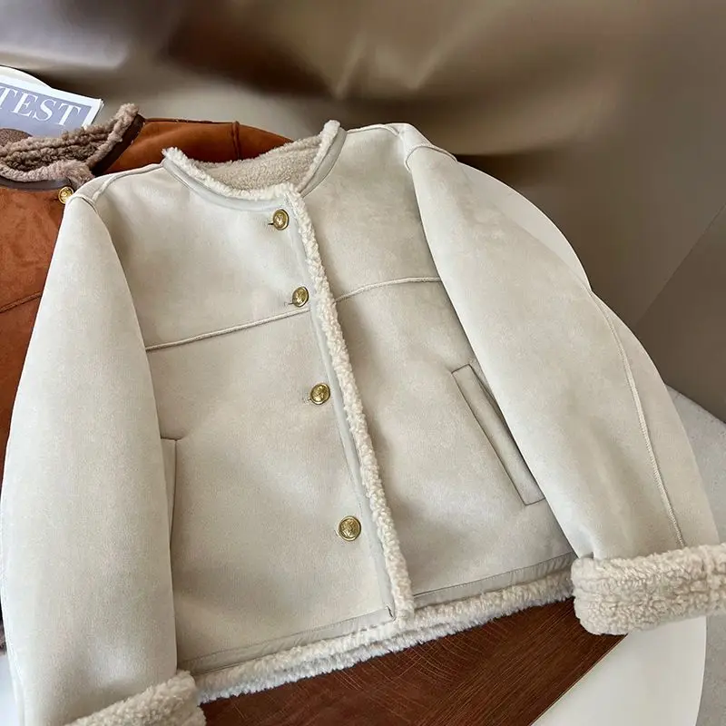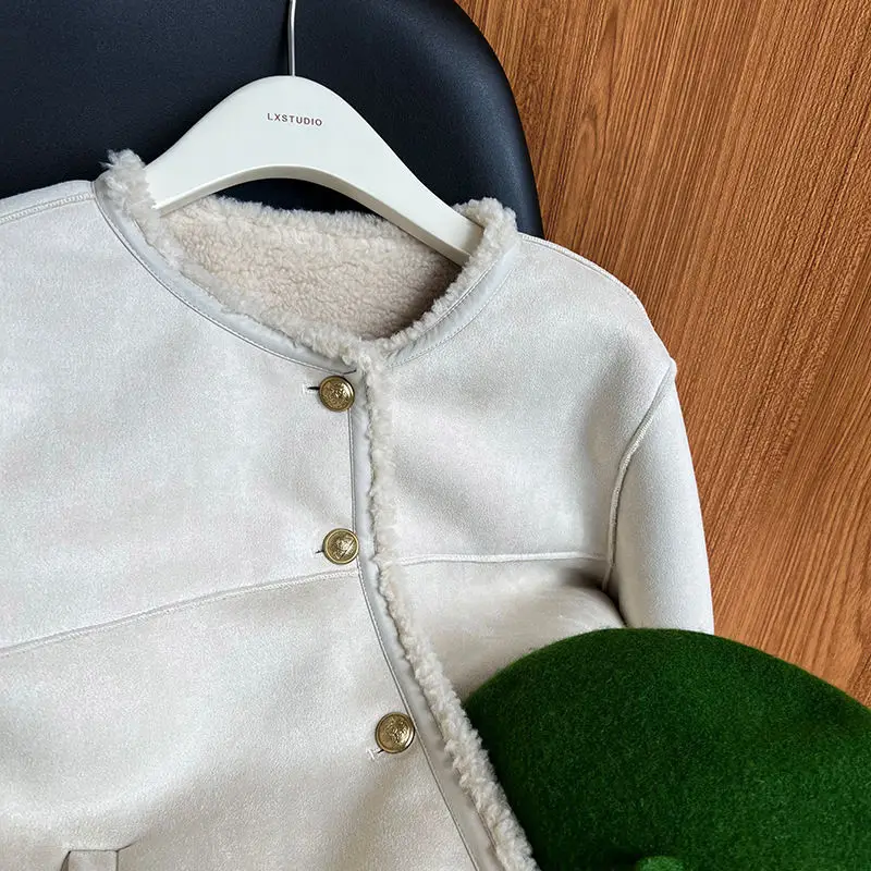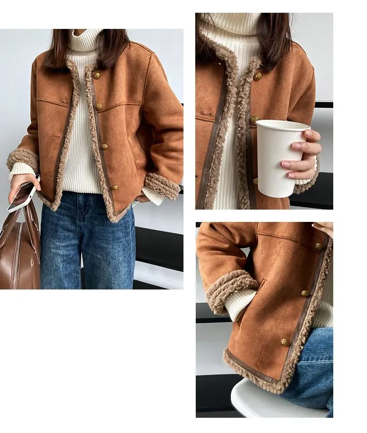 Round Neck Motorcycle Women's Warmth Jacket Female Autumn Winter New Lamb Deer Fur Top Trend Coats
