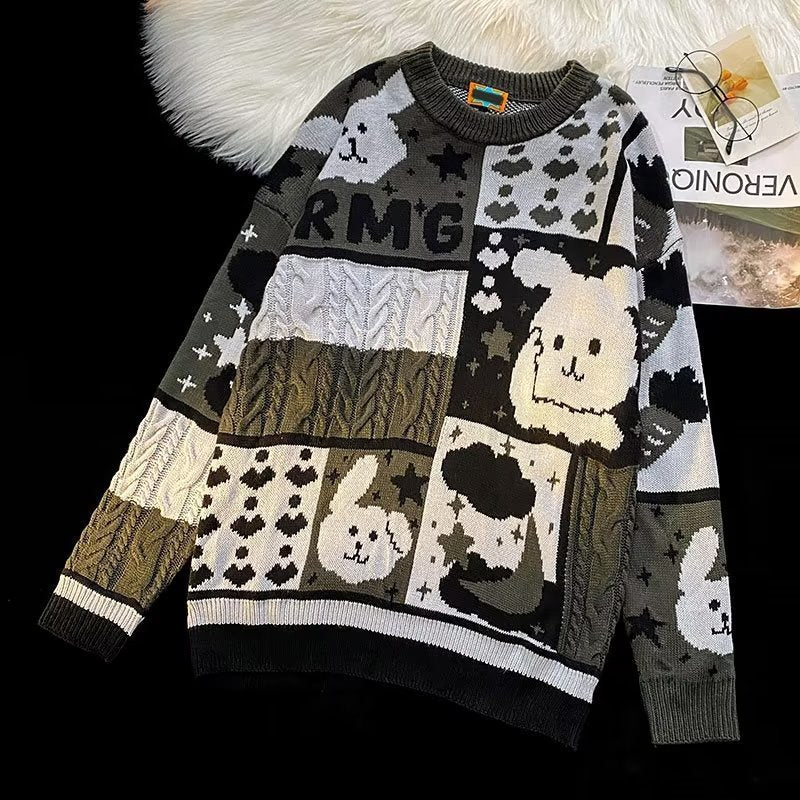 Round Neck Sweater Men's Retro Street Loose