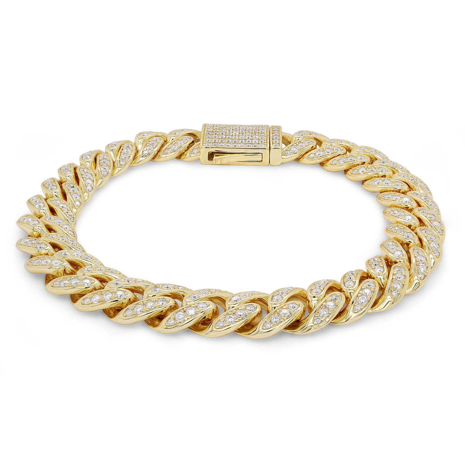 - This Cuban Chain Bracelet is made with 14K Yellow Gold Over Sterling Silver, allowing the beauty of the Synthetic Moissanite Diamond to truly shine. This Created Moissanite Diamond Bracelet are an enchanting, effortless look he'll love