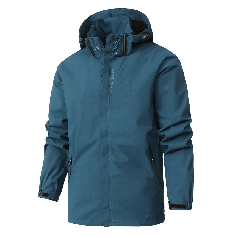 Spring Autumn Men's Lightweight Windproof Waterproof Jacket Outdoor Hiking Climbing Solid Color Long Sleeved Zipper Hooded Coat