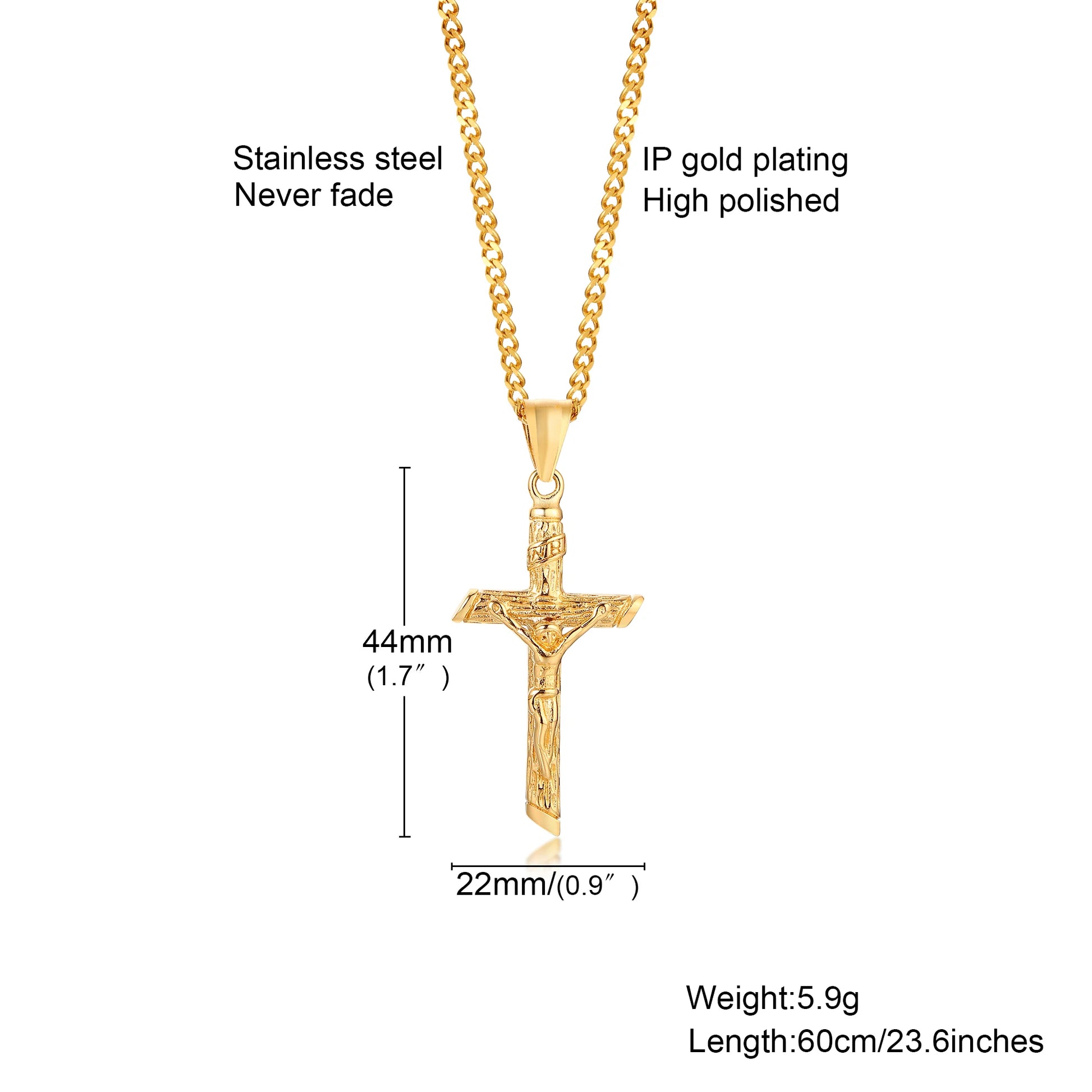 Stainless Steel Cross Necklace Catholicism Jesus Pendant Gold Color Collar Church Prayer Faith Jewelry for Men Women Gift