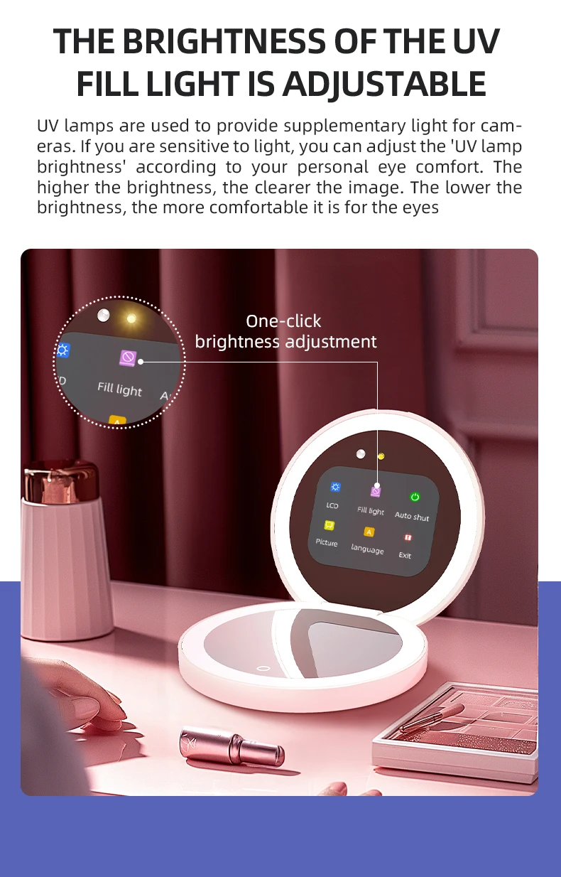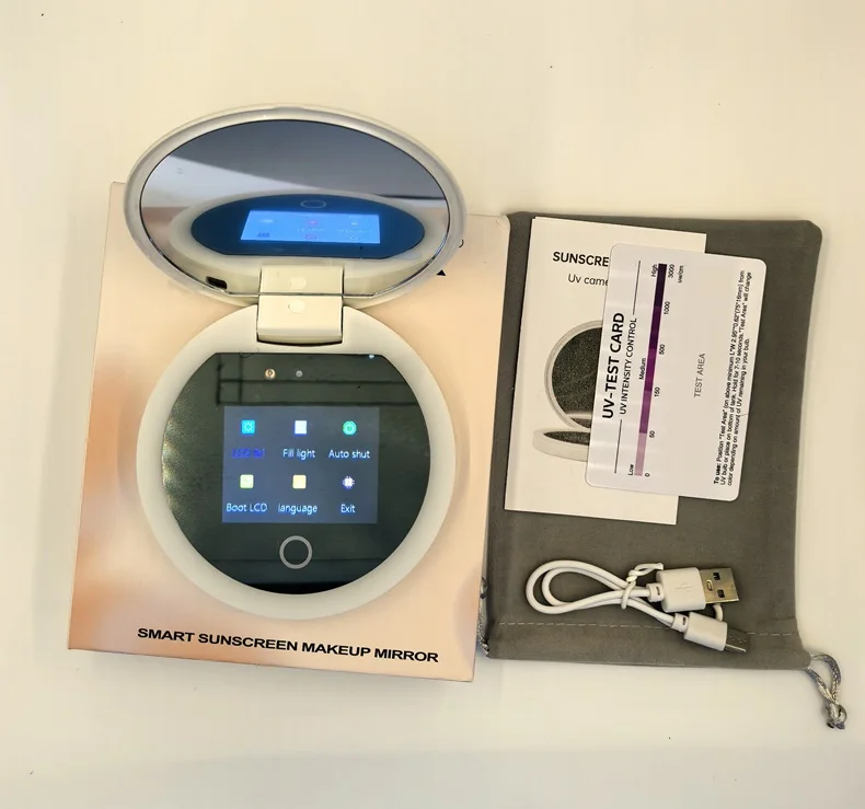 TENGMIR UV Smart Sunscreen Makeup Mirror Sunscreen detection mirror UV mirror sunscreen Testing Portable LED light makeup mirror