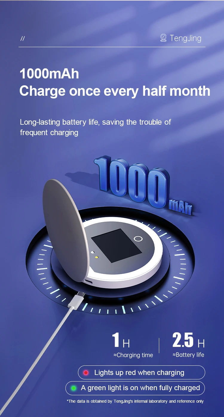 Powered by a high-precision 3000mAh lithium battery, this device doubles as a portable power bank. With a 5V–2A output and input, it ensures fast, reliable charging – whether you're powering up the mirror or topping up your phone on the go.
