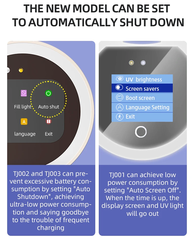 If a time is set, the (TJ002, TJ003) machine will automatically shut down after the time, and (TJ001) will implement screen saver function, which will make the machine last longer and the battery life longer.