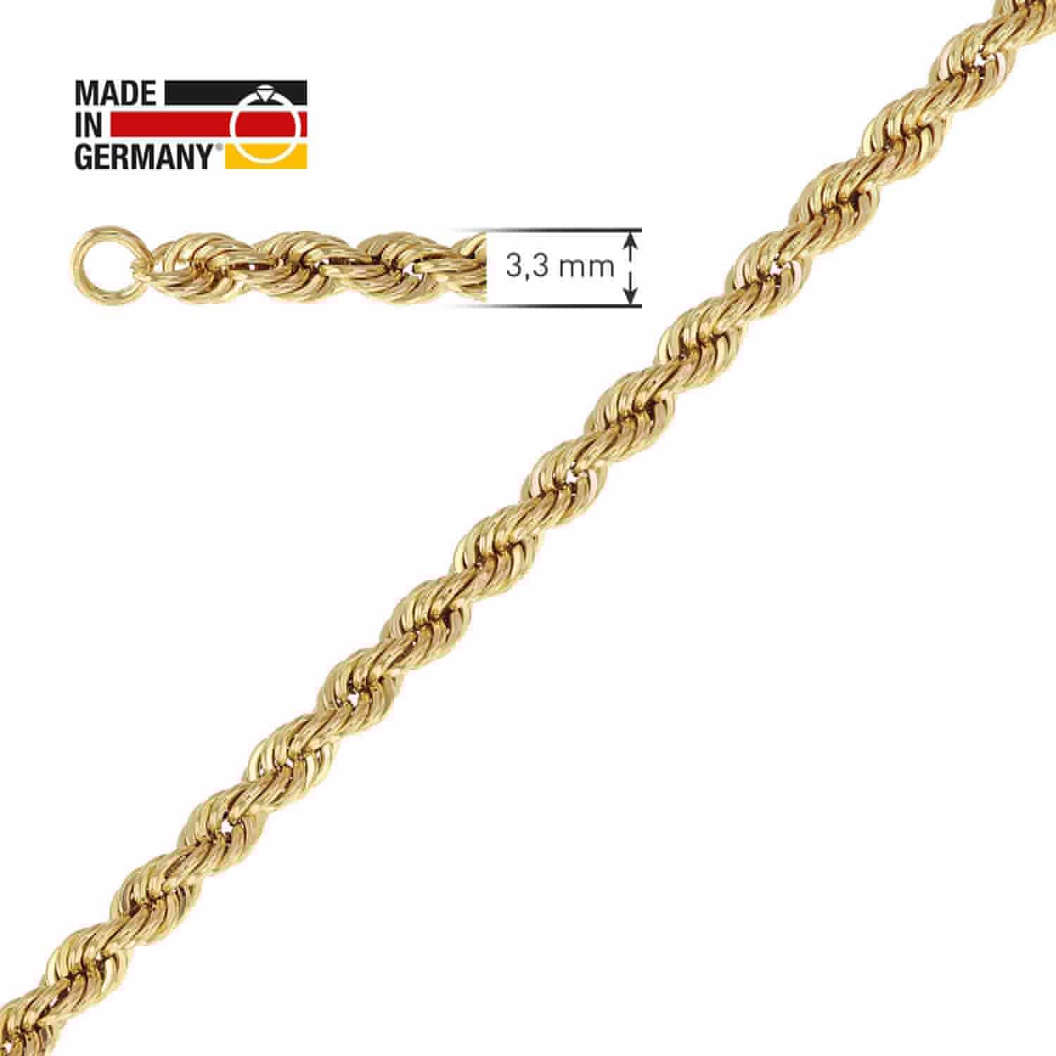 Armband 8 Karat Gelbgold 333, Kordelmuster, Länge 18,5 cm, Breite 3,3 mm, bequem bedienbarer Karabinerverschluss, hochwertige Verarbeitung, Made in Germany, Lieferung inklusive einem Mikrofaser-Pflegetuch
