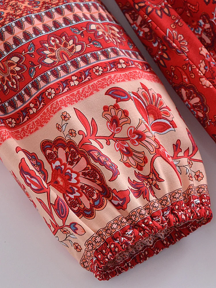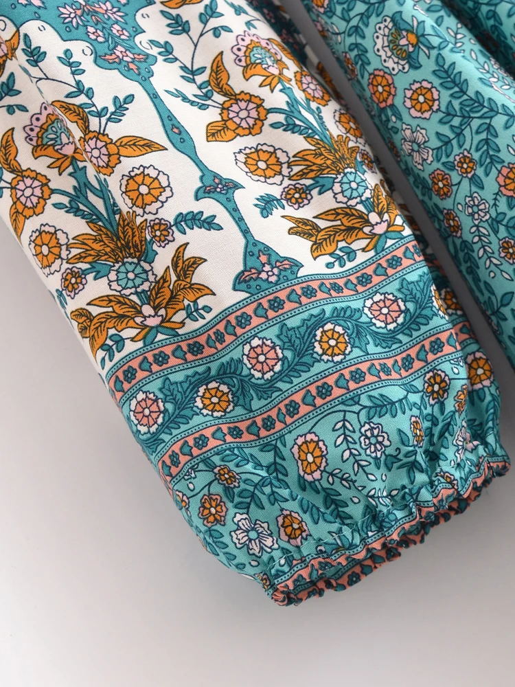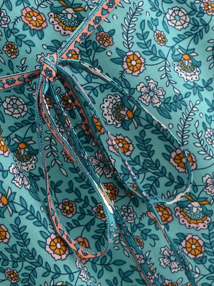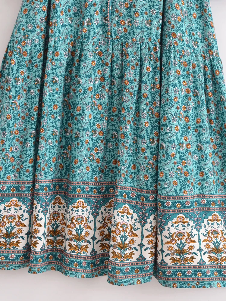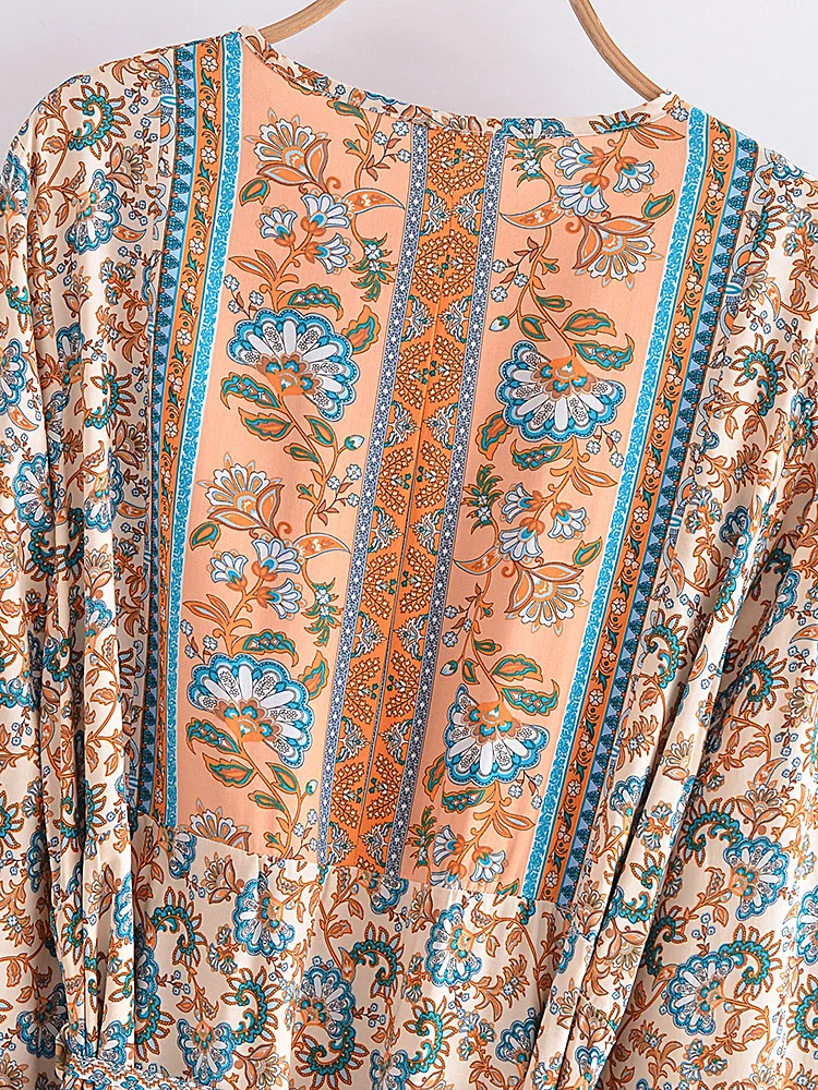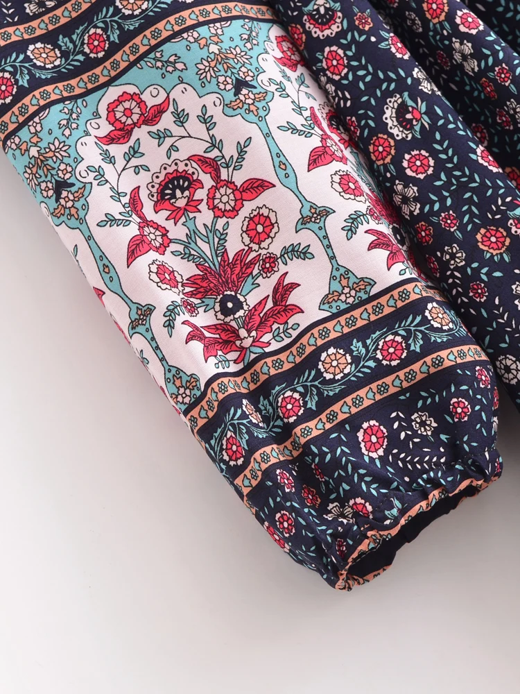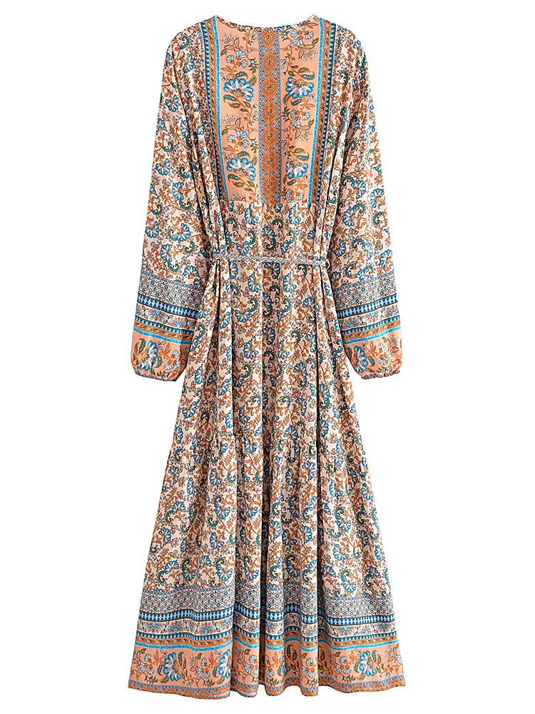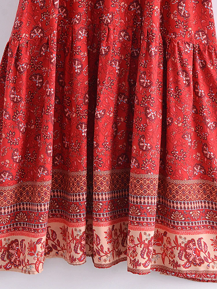 Vintage Chic Women Elegant Lace-up Tassel Floral Print Beach Bohemian Maxi Dresses Robe Ladies Rayon Cotton Boho Dress Vestidos