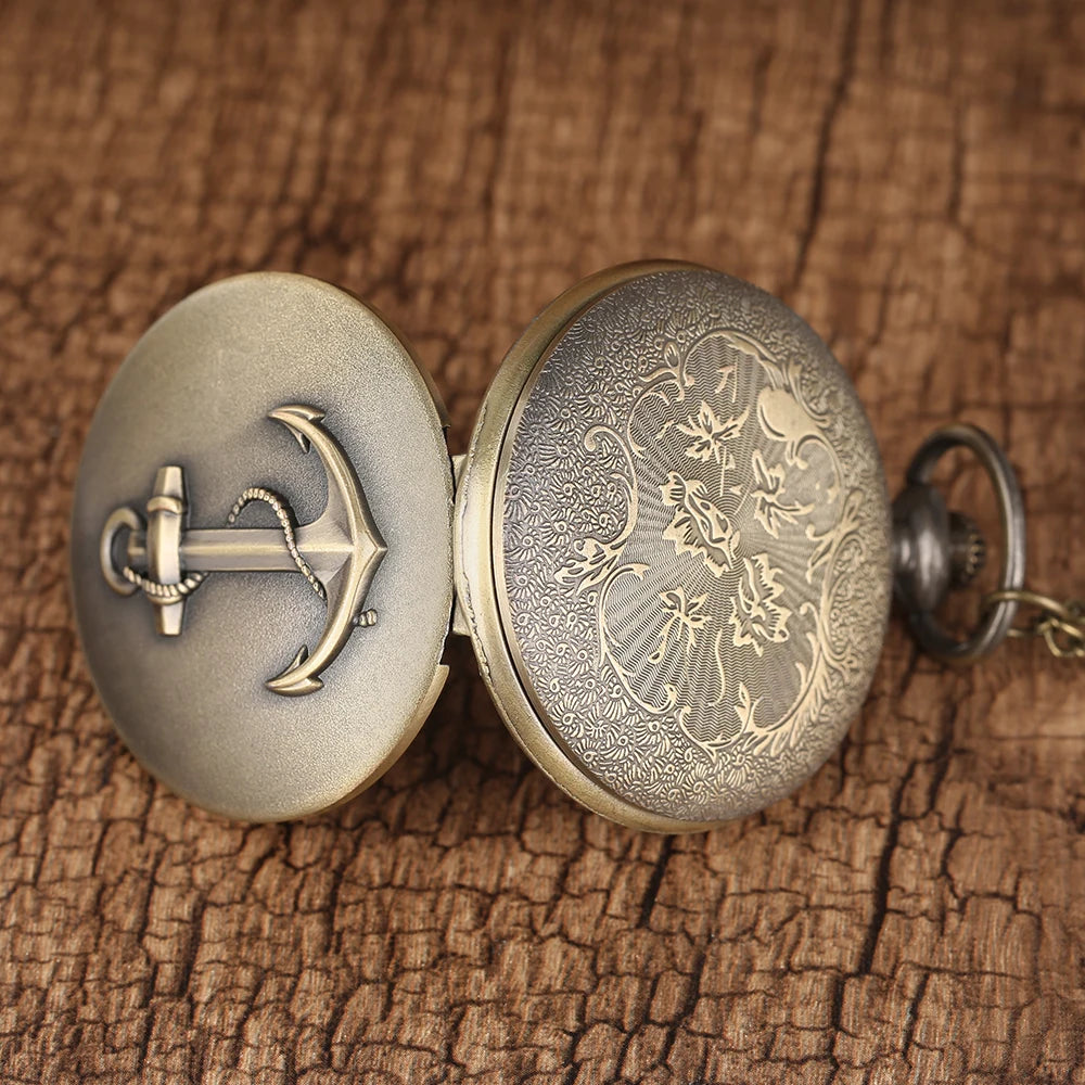Vintage Copper Pocket Watch Men Anchor Souvenir Gift with 80cm Necklace Chain Classic Design Quartz Best Gift Clock Male Child