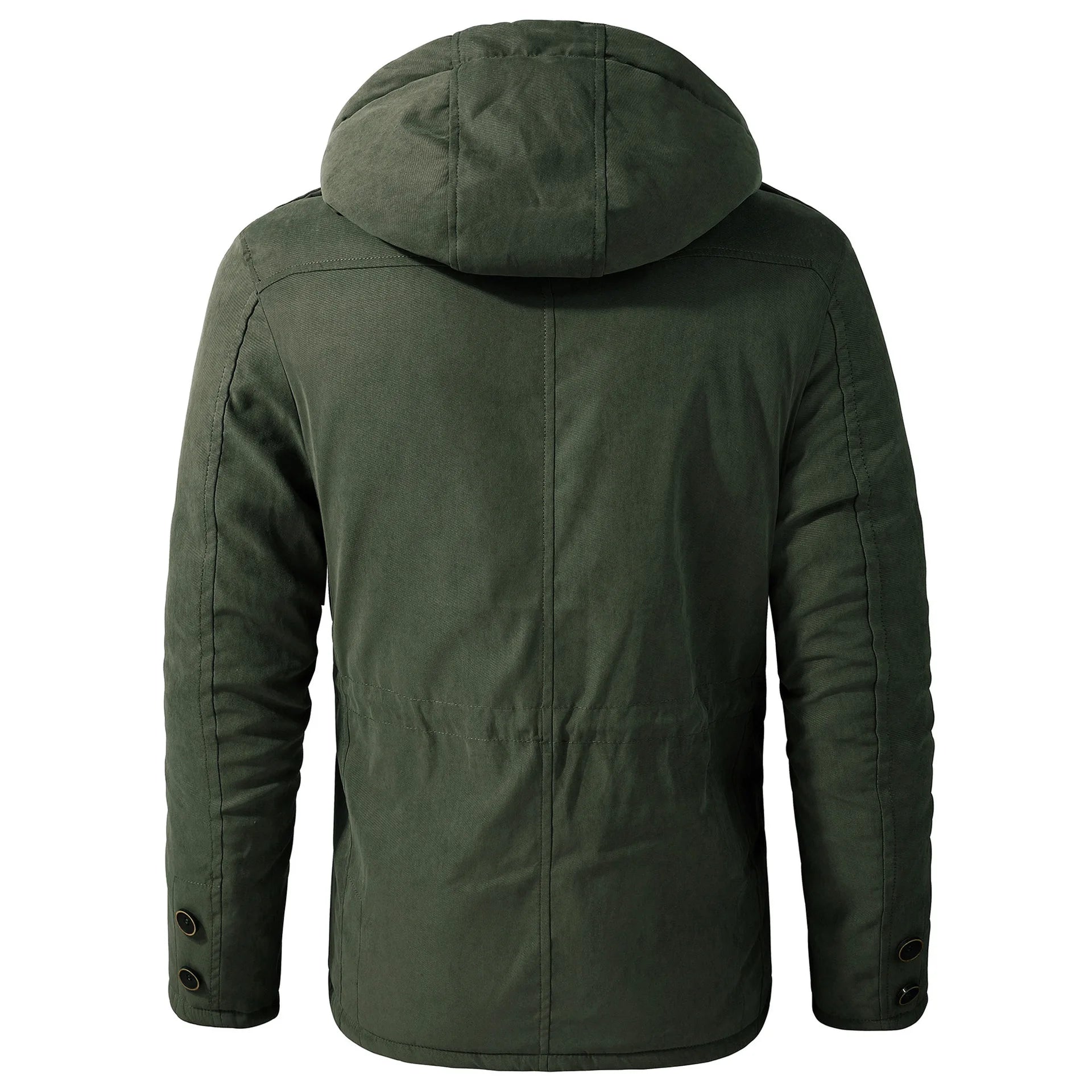 Winter Men's Jacket USA SIZE Large Size Lamb Fleece Hooded Cotton Jacket Thickened Multi-Pocket Casual Coat Mid Length Jackets