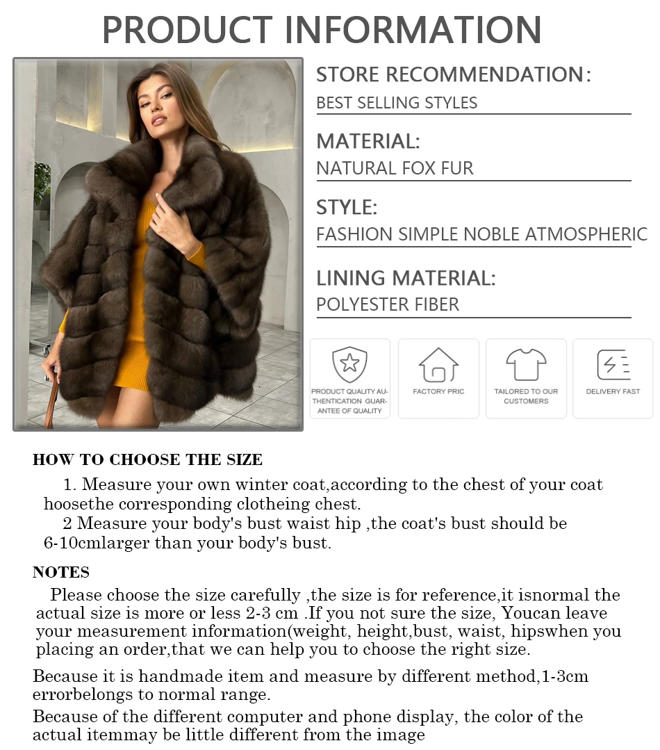 Winter Real Fox Fur Coat For Women Natural Fox Fur Jackets Mid-Length High Quality Fox Coat Women Luxury 2023