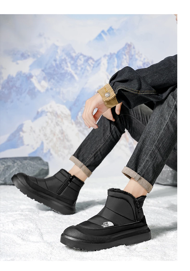 Winter Shoes Men Fur Warm Comfortable Snow Boots Outdoor Waterproof Down Boots High Top Ankle Boots Platform Shoes Size 44