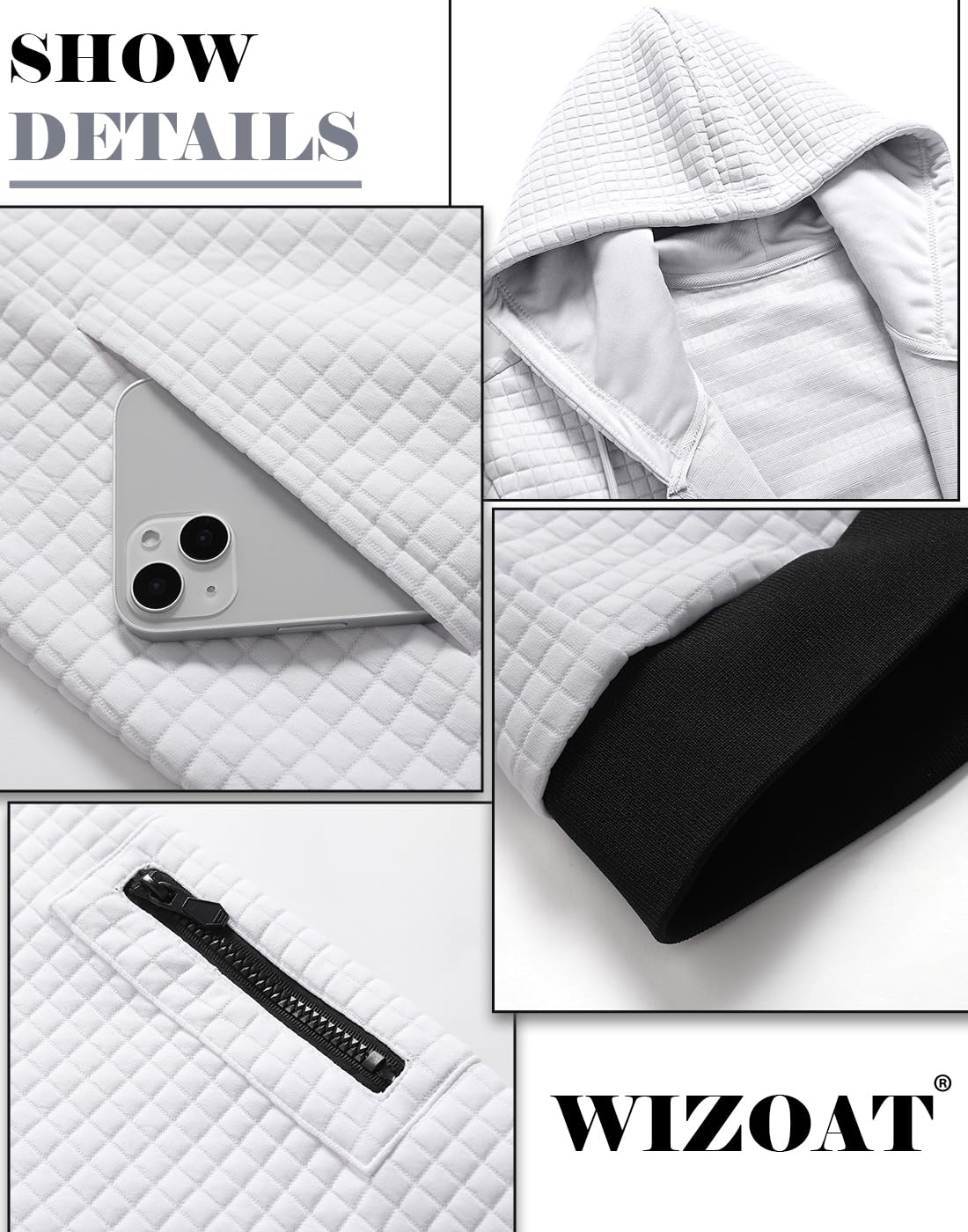 - STYLISH DESIGN: Mens Hoodies Zip Up designed with a full zip, ribbed hem and cuffs, adjustable drawstring hood, left arm with decorative zipper and 2 side pockets on the front. Zip Up Hoodie Men featured with 3D waffle pattern quilted design, more stylish and stereoscopic.