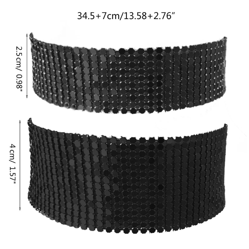 Women Rhinestone Choker Necklace Shiny Wide Crystal Collar Chain Female Girls Solid Color Party Club Bling Neck Chain Scarf