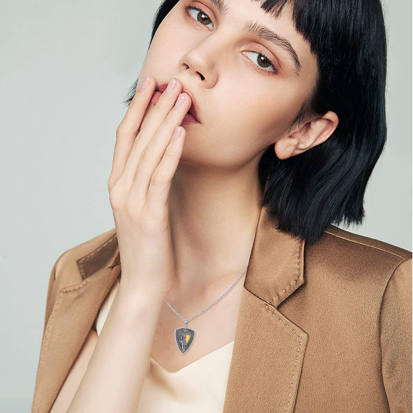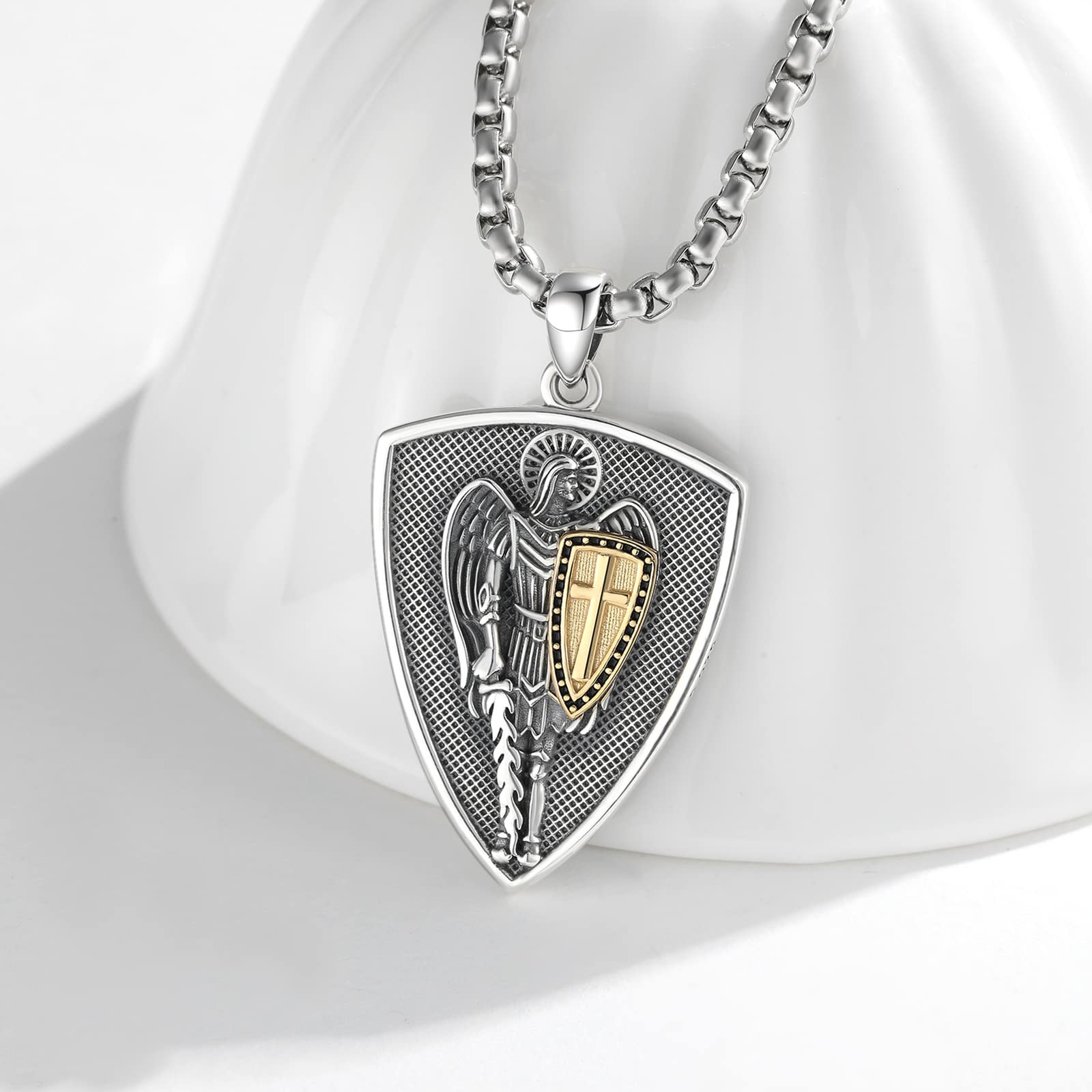 - 【Designkonzept】Der Erzengel Michael ist ein Symbol für Tapferkeit, Gerechtigkeit und Stärke in der Bibel. Das Design dieser Halskette ist das Aussehen von St. Michael, die ein Schwert und einen Schild hält, was Stärke und Schutz bedeutet. Diese Saint Michael Halskette gibt dem Träger Vertrauen in Mut, Gerechtigkeit und Schutz.